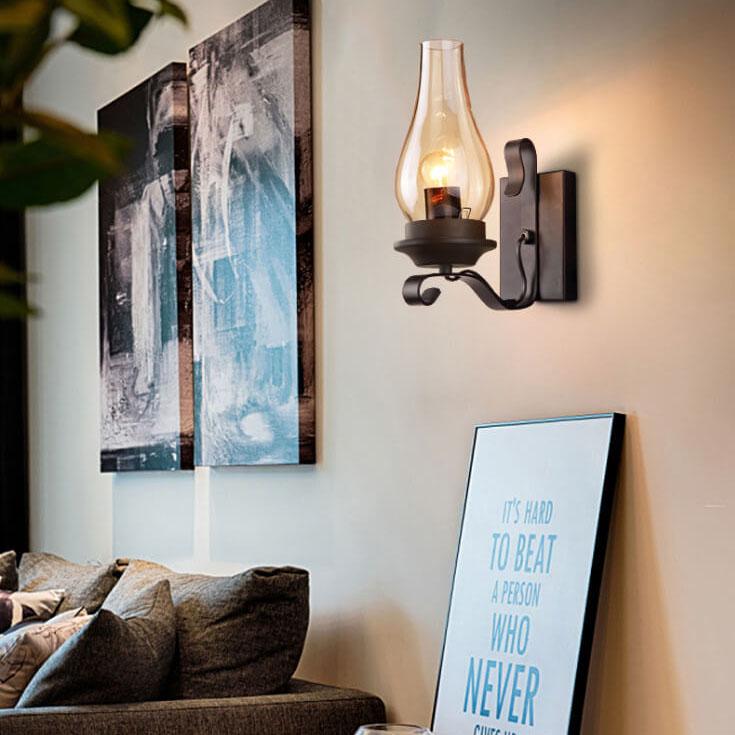 ヴィンテージガラスシェード 錬鉄製灯油ランプ 1灯 壁付け照明