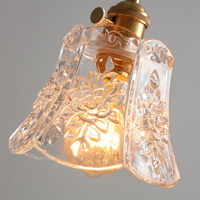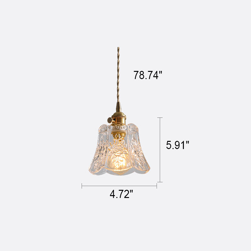 ヴィンテージガラスソーンフラワー真鍮1灯ペンダントライト