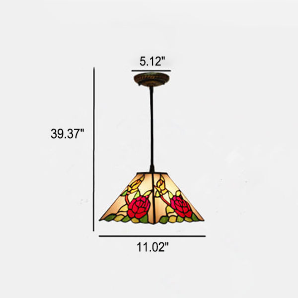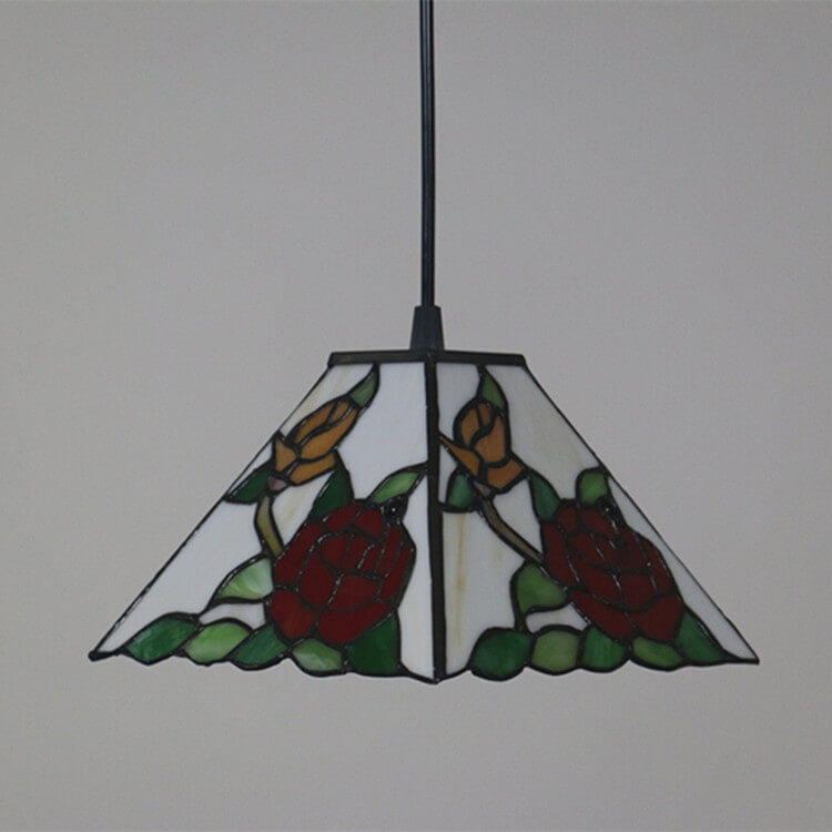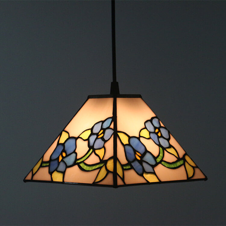 ヴィンテージガラスのティファニーフラワーパターンデザイン1灯ペンダントライト