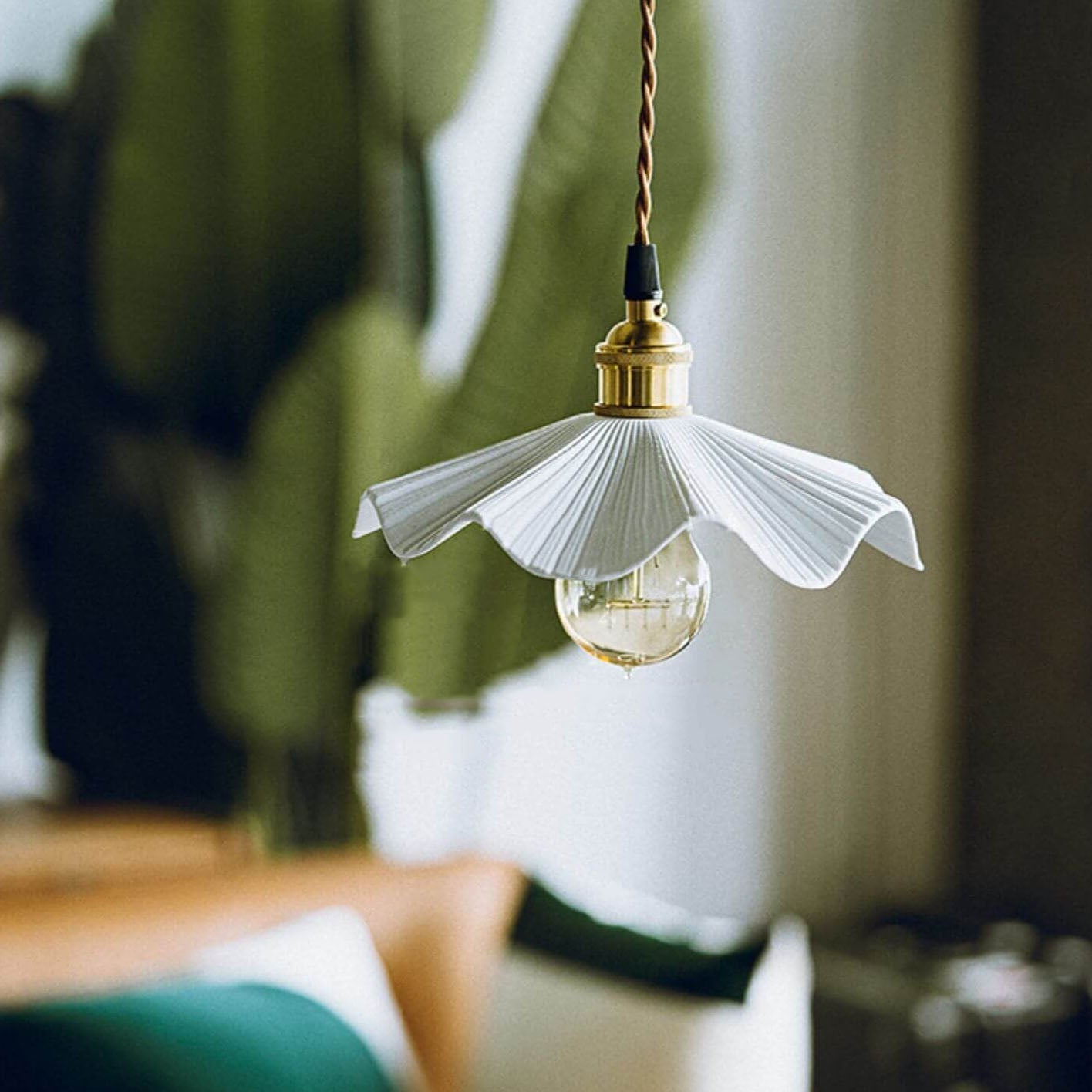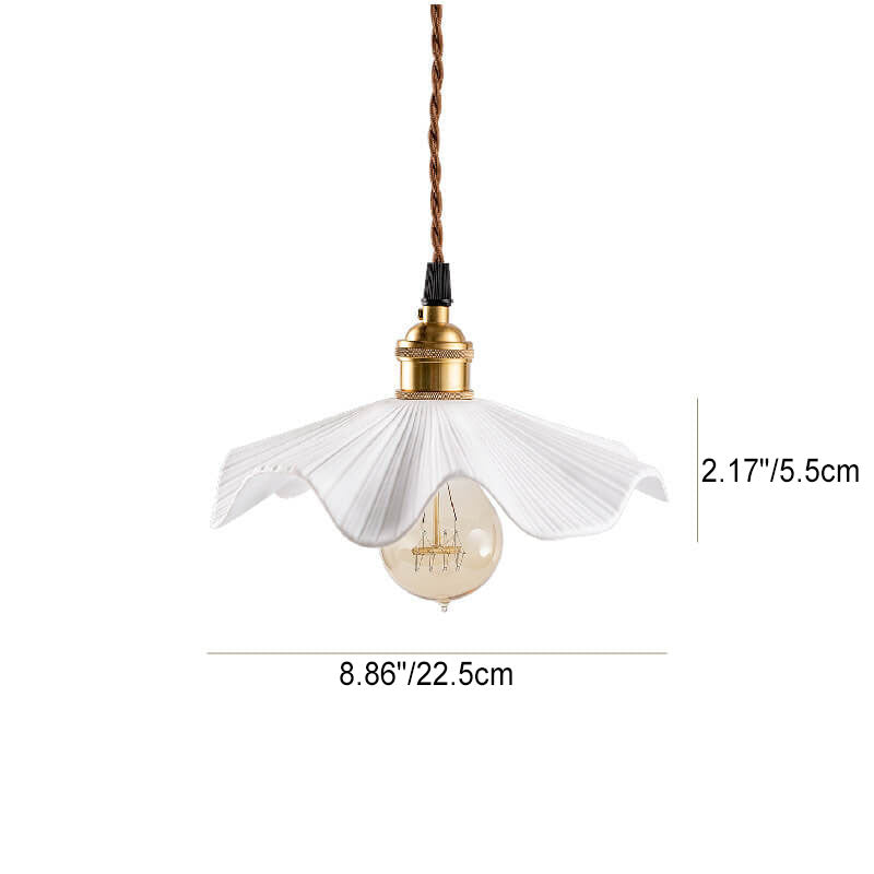ヴィンテージ 日本製 陶器 ウェーブ スカラップ銅製 1灯ペンダントライト