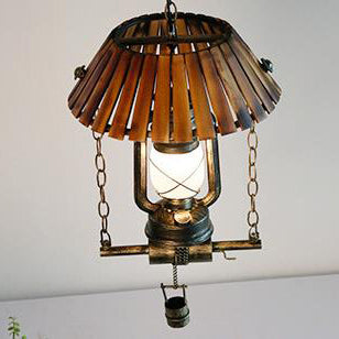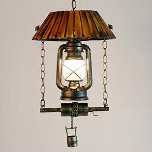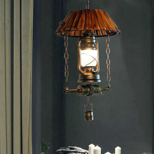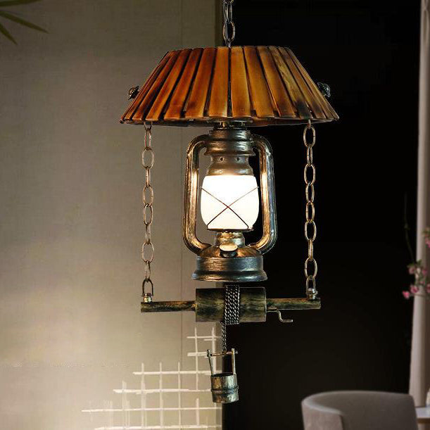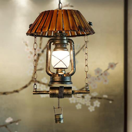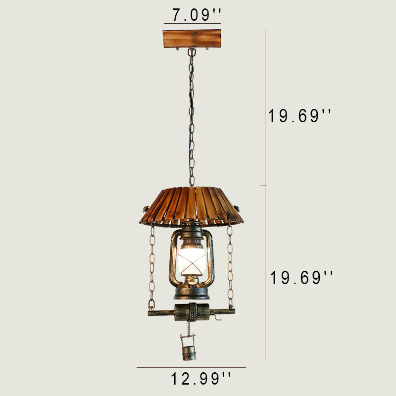 ヴィンテージ灯油ランプ 竹製 1灯ペンダントライト