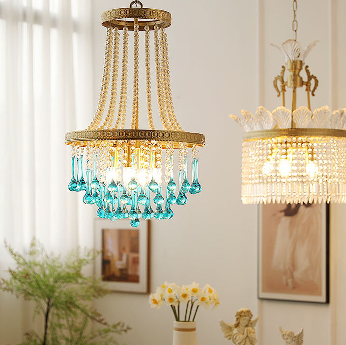 ヴィンテージ ラグジュアリー クリスタル マルチレイヤー オーバル 4 ライト シャンデリア