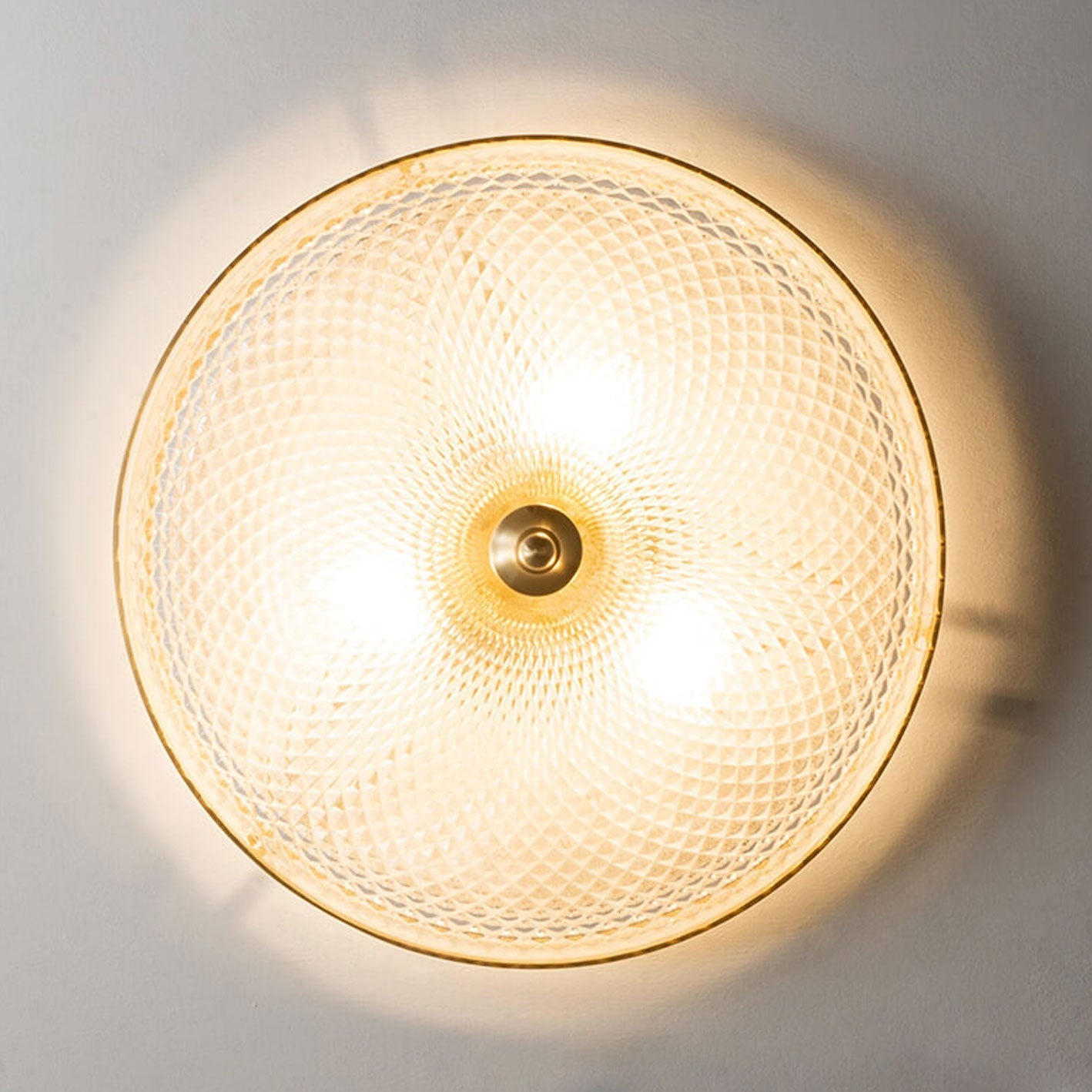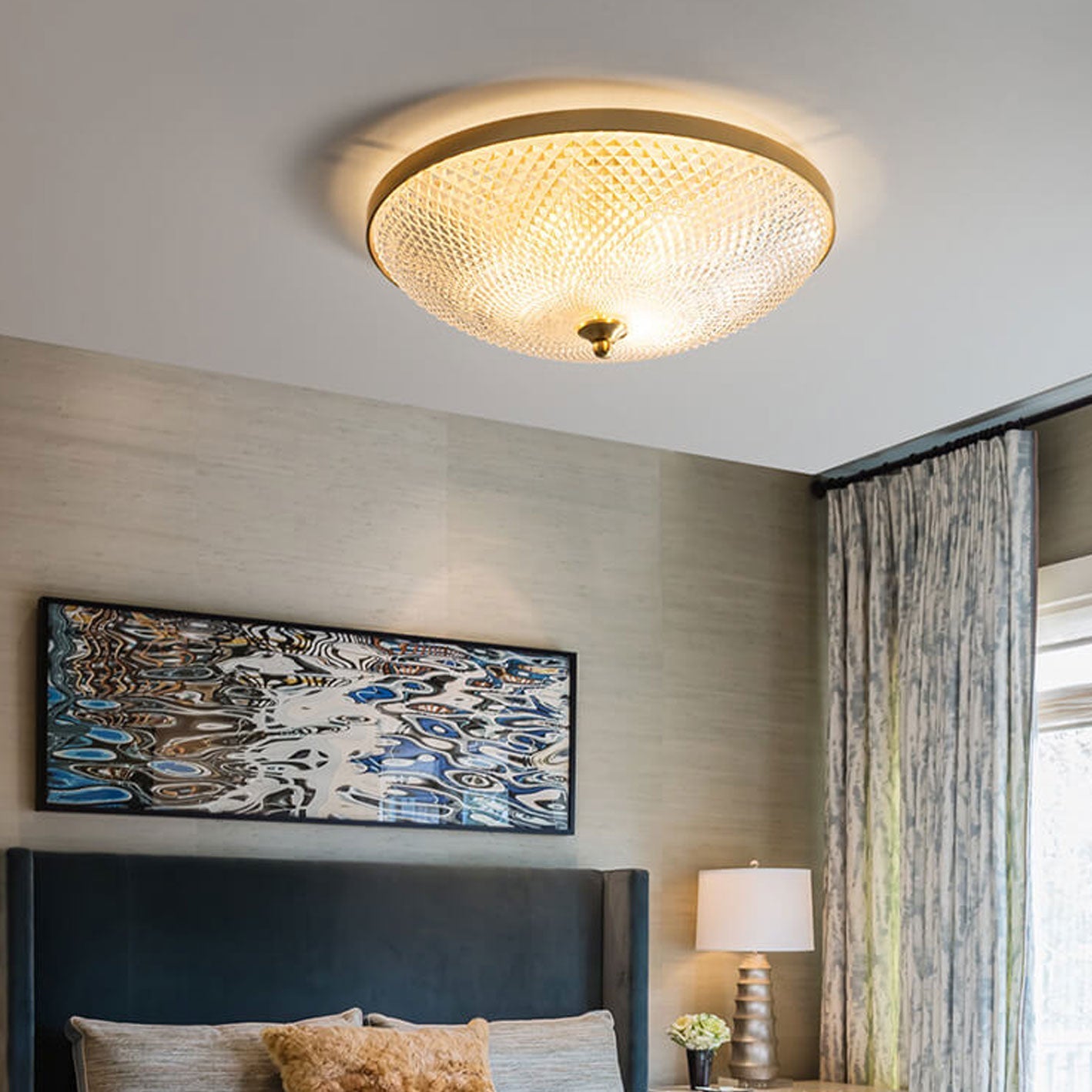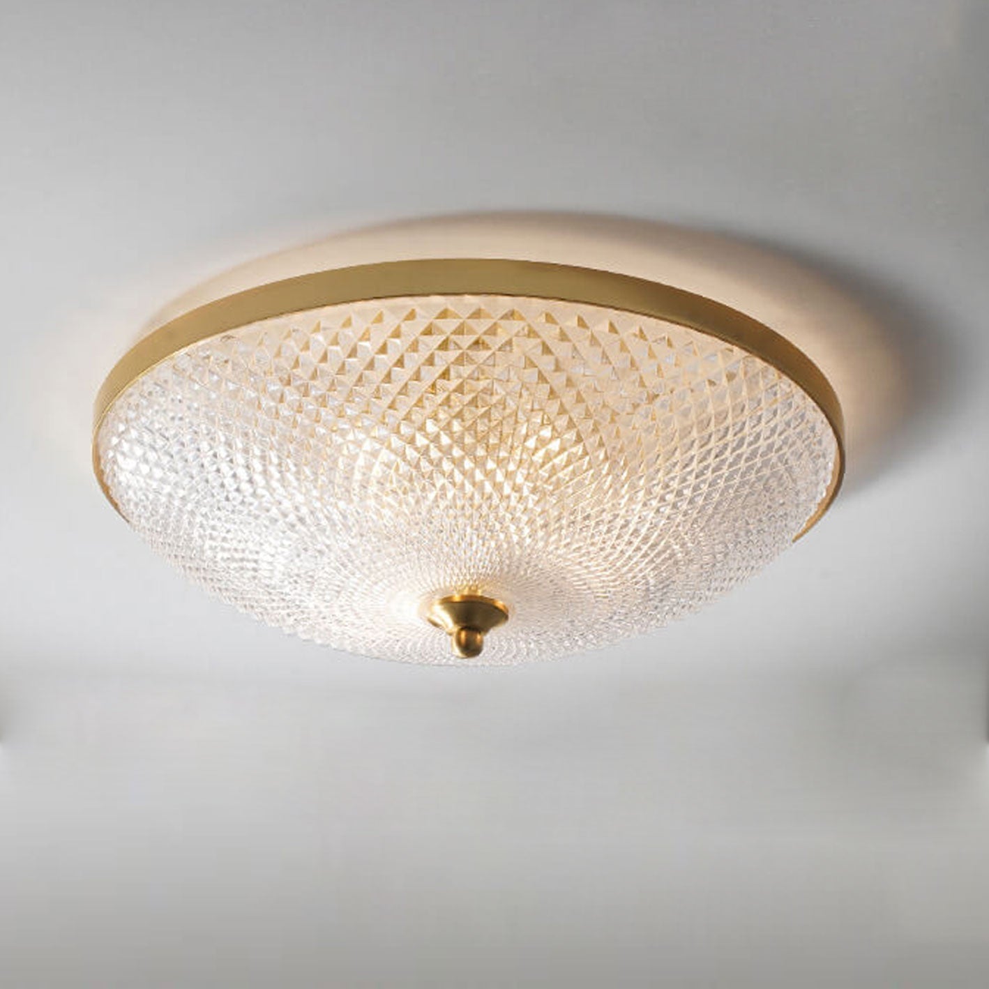 ヴィンテージ ラグジュアリー ラウンド ブラス ガラス ボウル 3 ライト フラッシュマウント シーリングライト