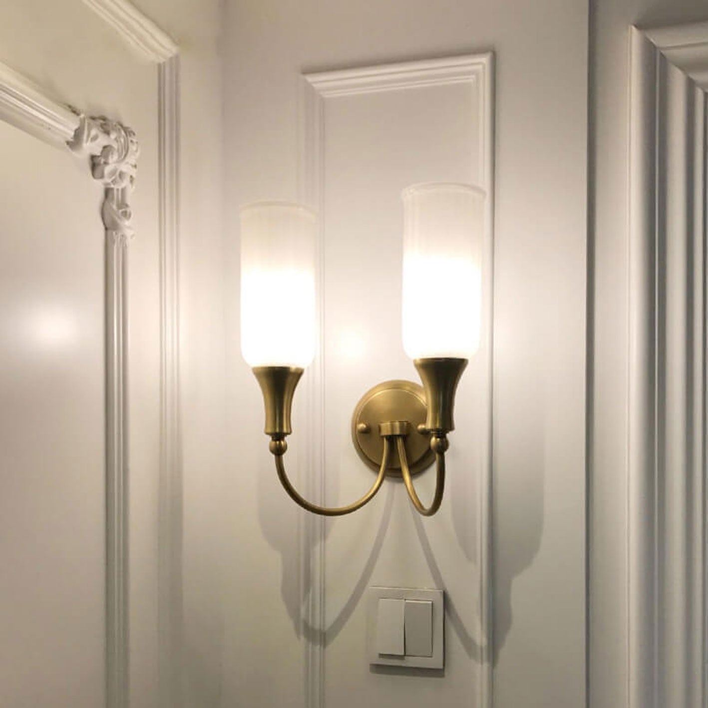 ヴィンテージ風の素朴な真鍮ガラス製1/2灯壁付け照明