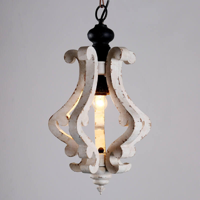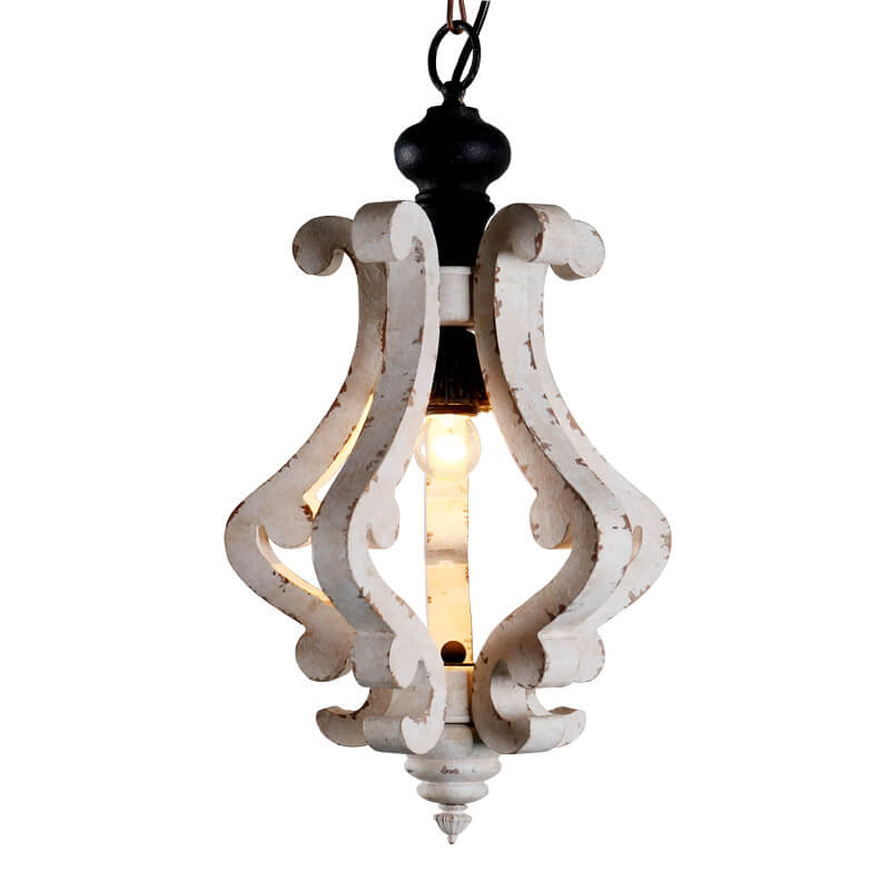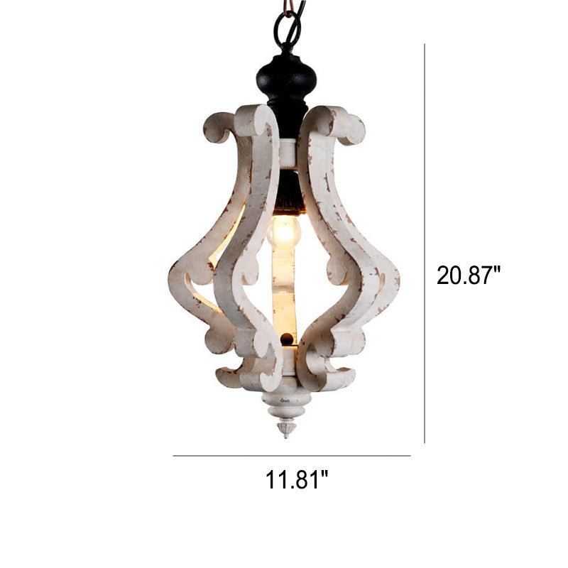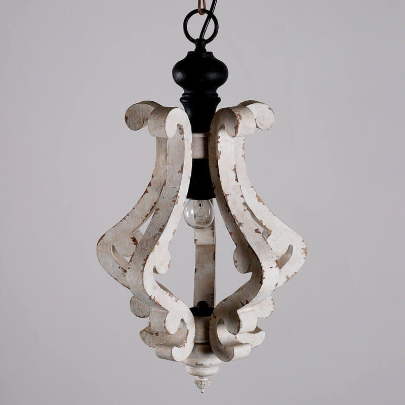 ヴィンテージ ラスティック ホワイト アンティーク 木製ケージ 1灯ペンダントライト