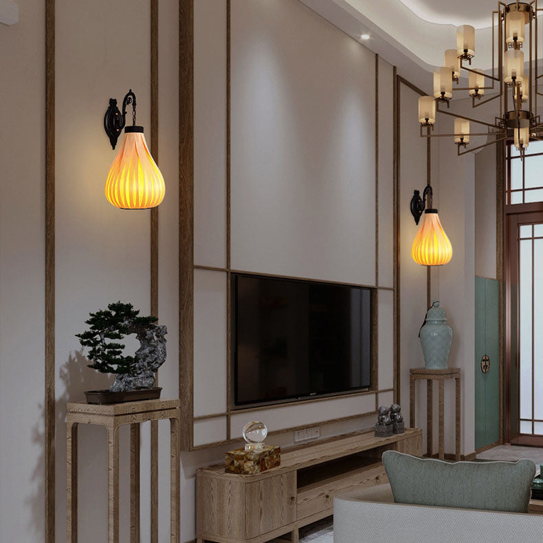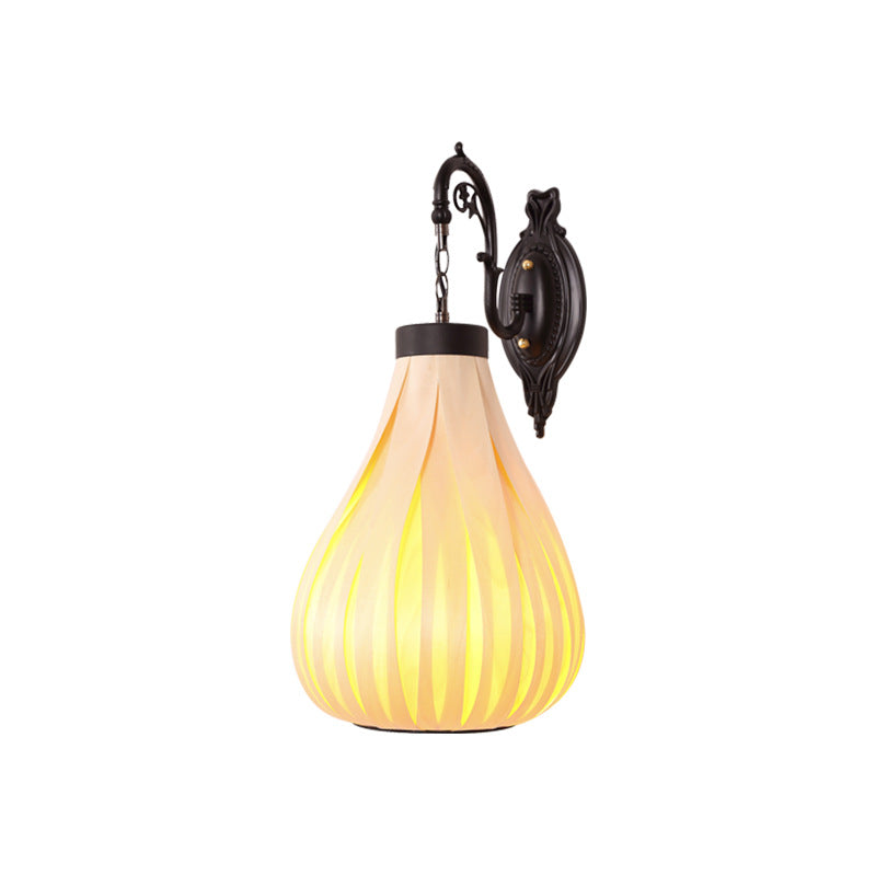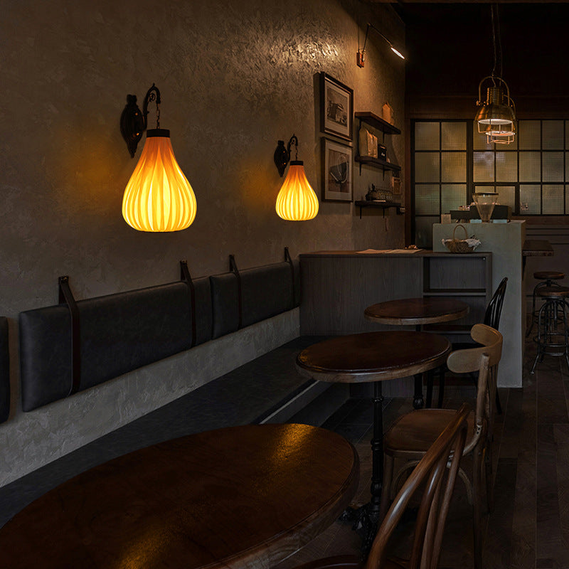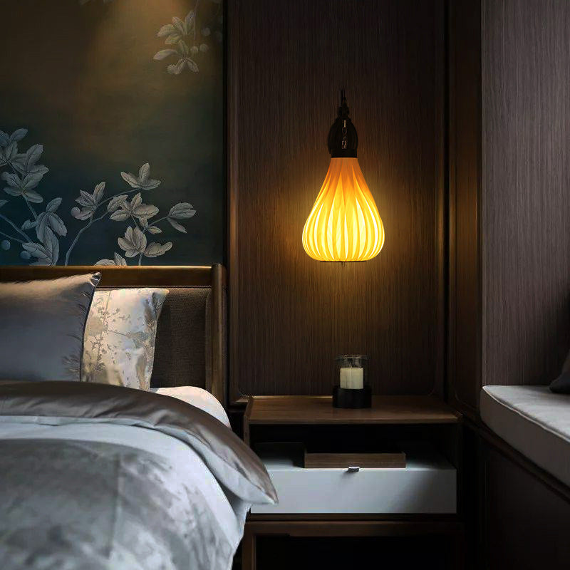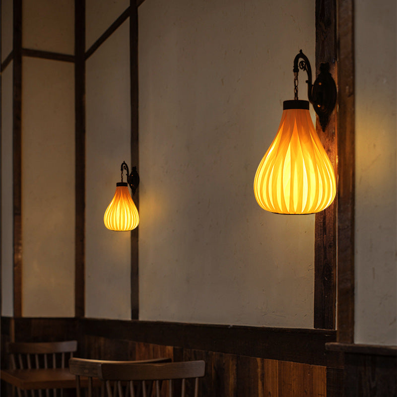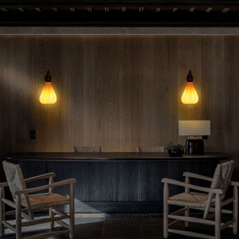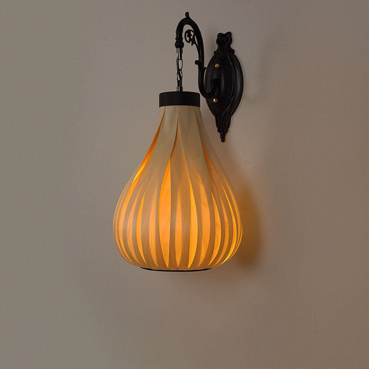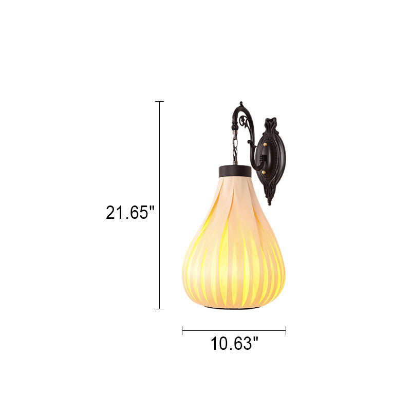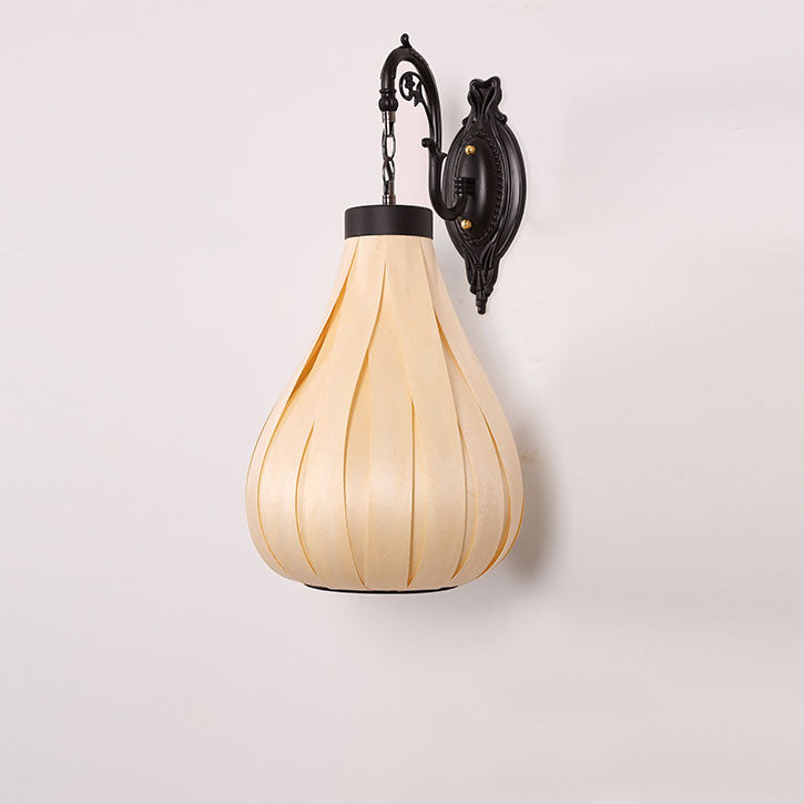 ヴィンテージ 東南アジア風 木製ベニヤ オーバルジャー 1灯 壁付け 燭台ランプ