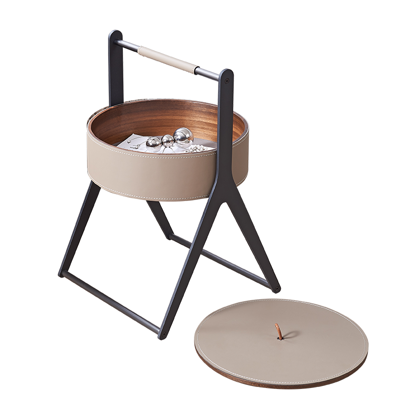Hidden Storage Compartment: Removable lid with saddle leather handle keeps items neatly stored and easily accessible.