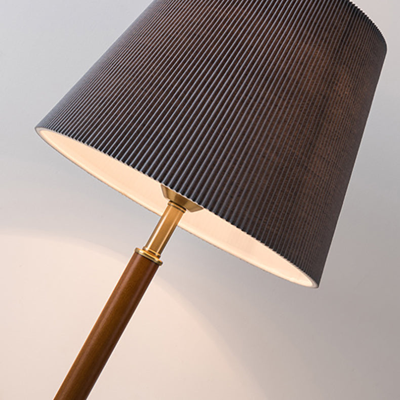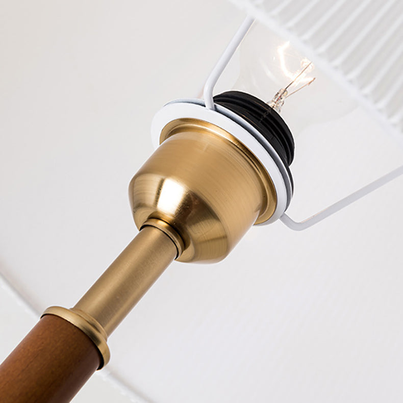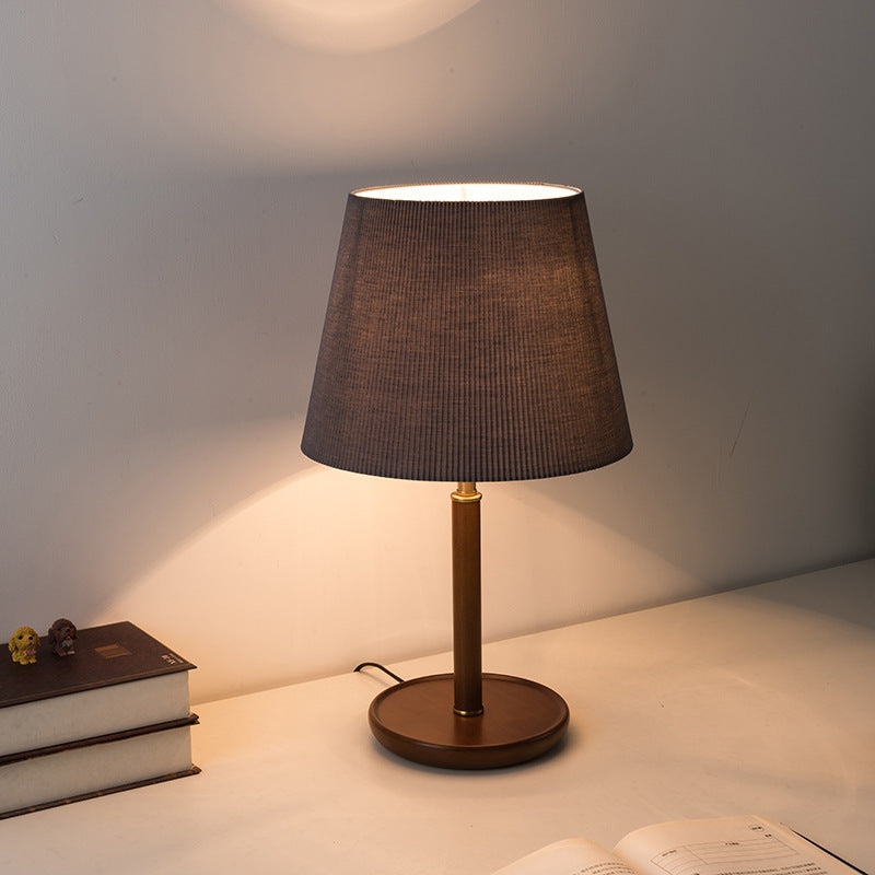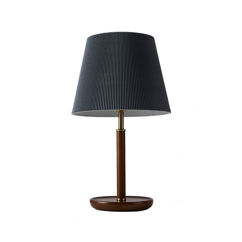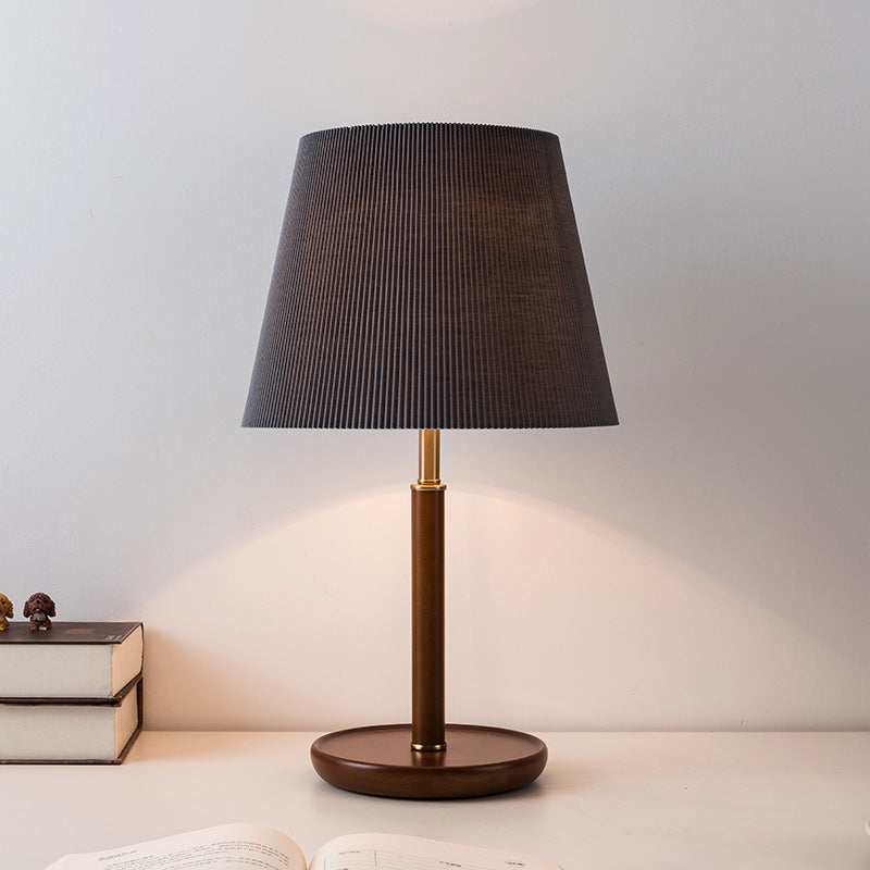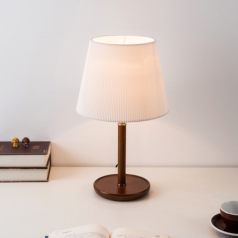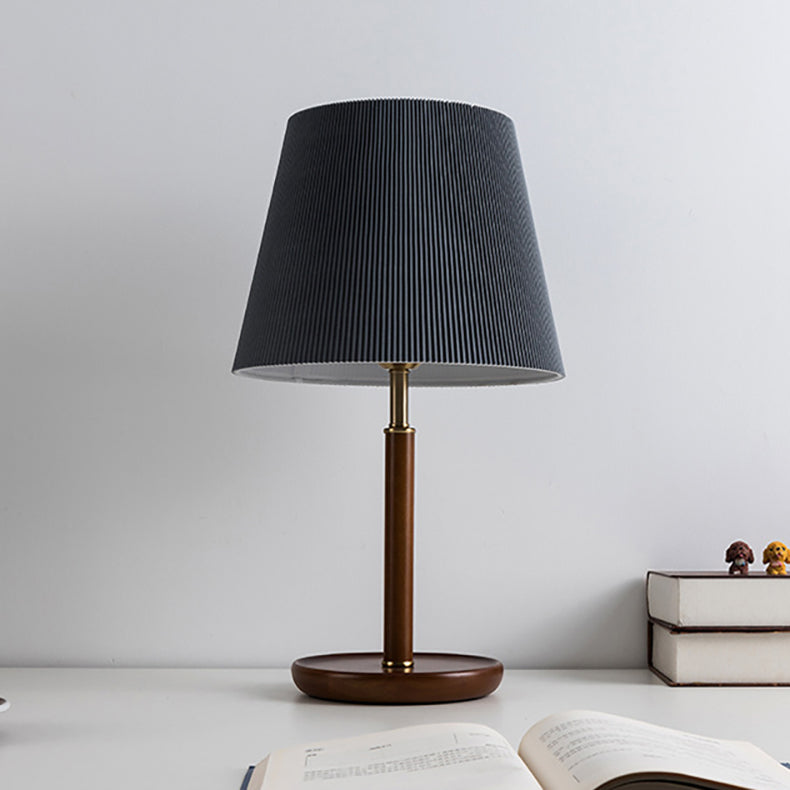 Traditional Vintage Pleated Fabric Shade Wooden Base 1-Light Table Lamp For Bedroom