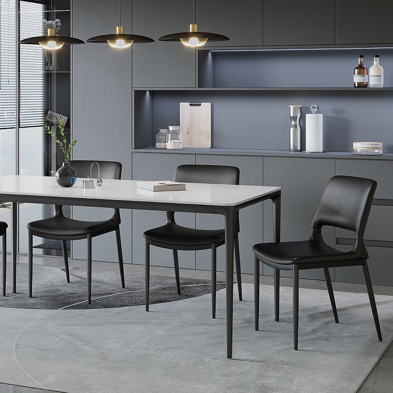 Modern Minimalist Rectangular Curved Seat Microfiber Leather Carbon Steel Dining Chair Backrest For Dining Room