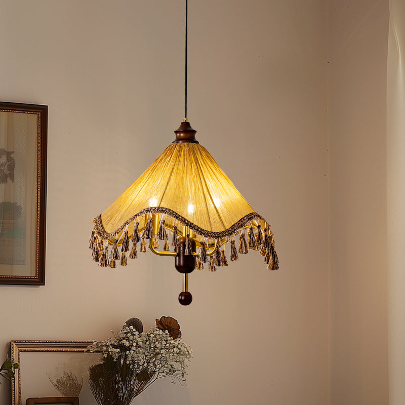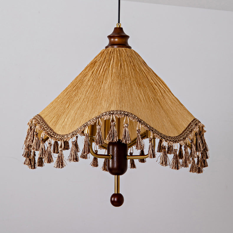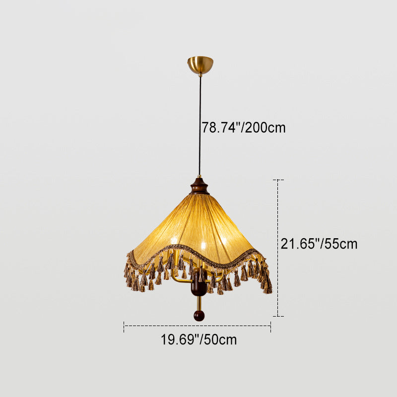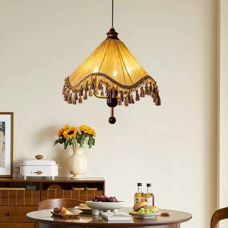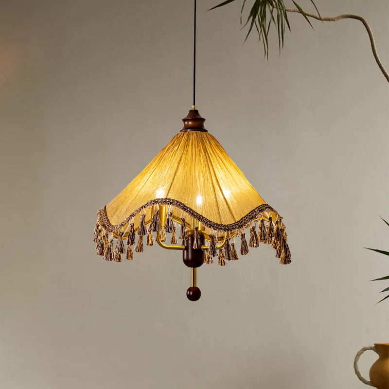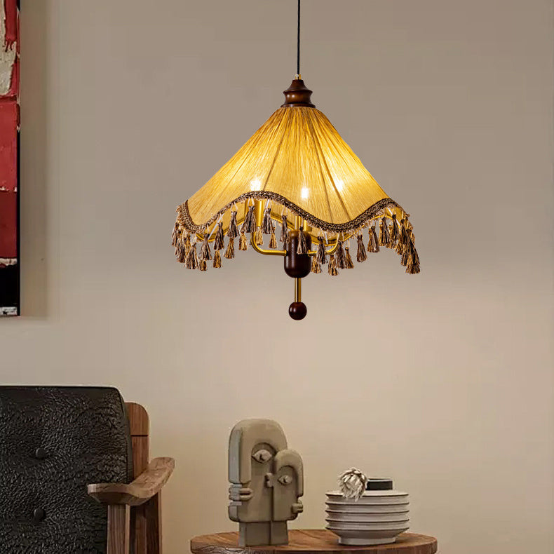 Contemporary Boho Umbrella Cone Wood Fabric 1-Light Pendant Light For Bedroom