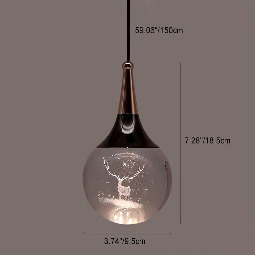 Contemporary Creative Aluminum Crystal Ball Deer Jellyfish Earth LED Pendant Light For Bedside