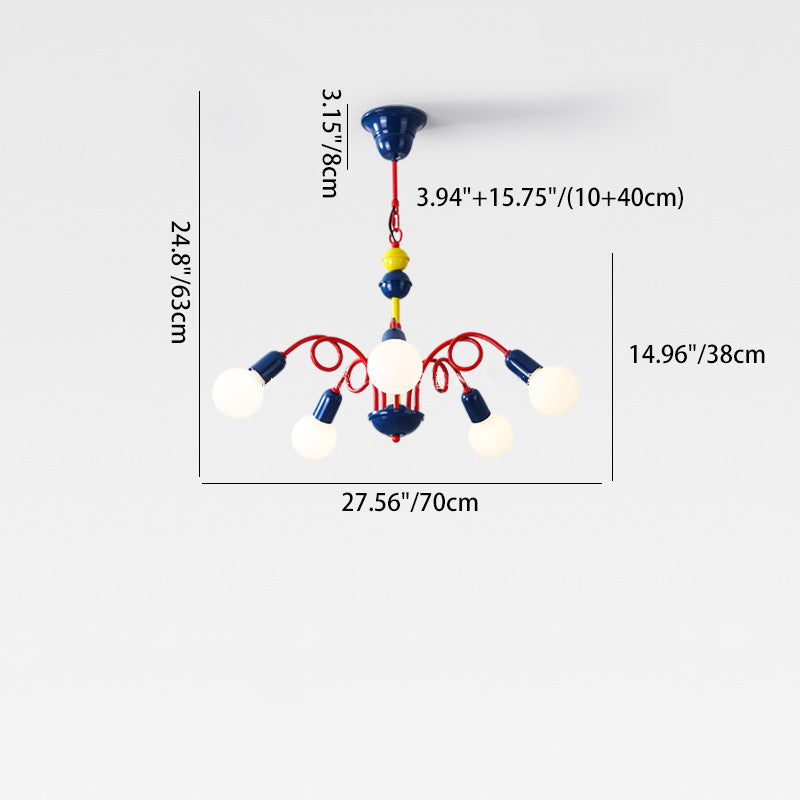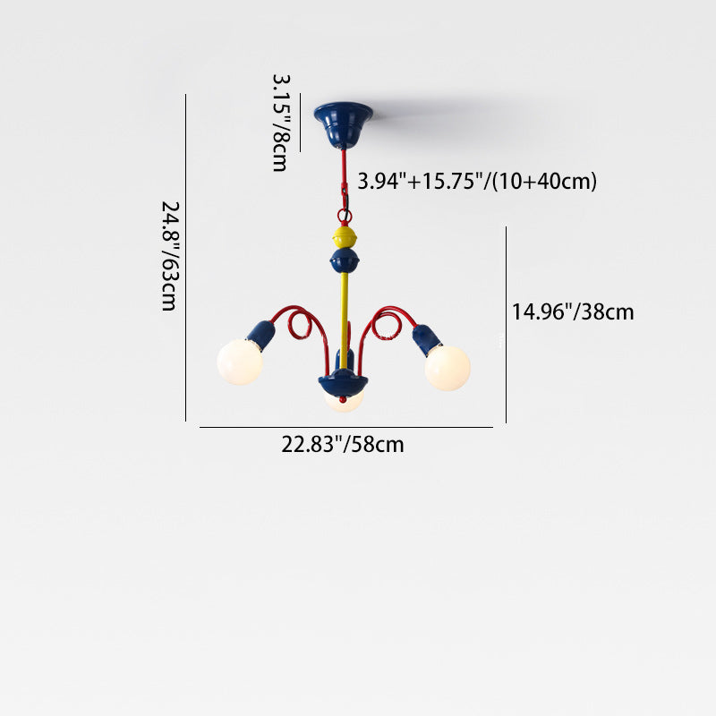 Contemporary Creative Branch Curved Rod Round Ball Iron 3/5/8 Light Chandelier For Living Room