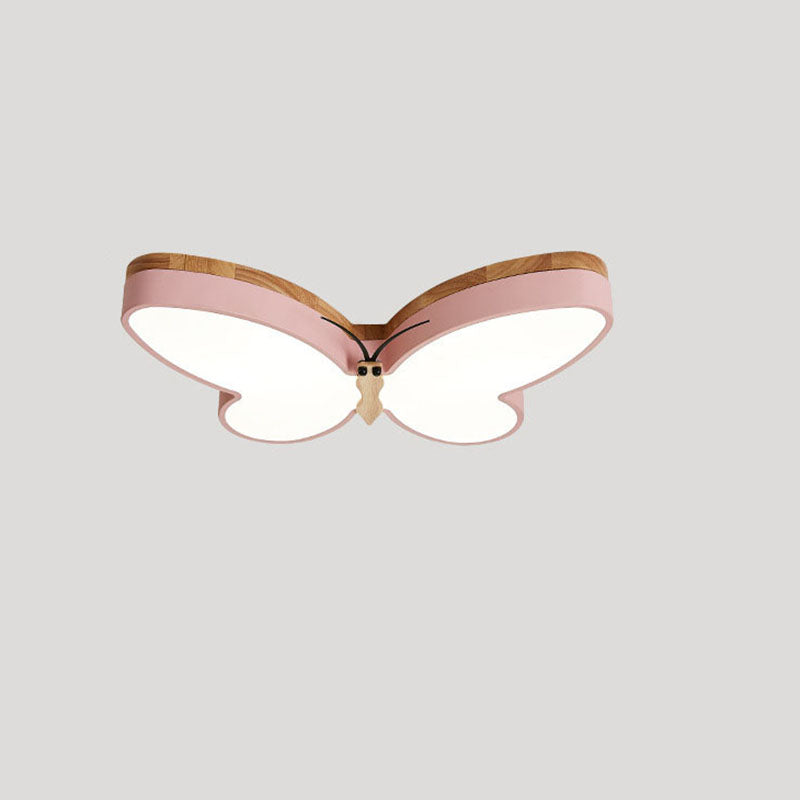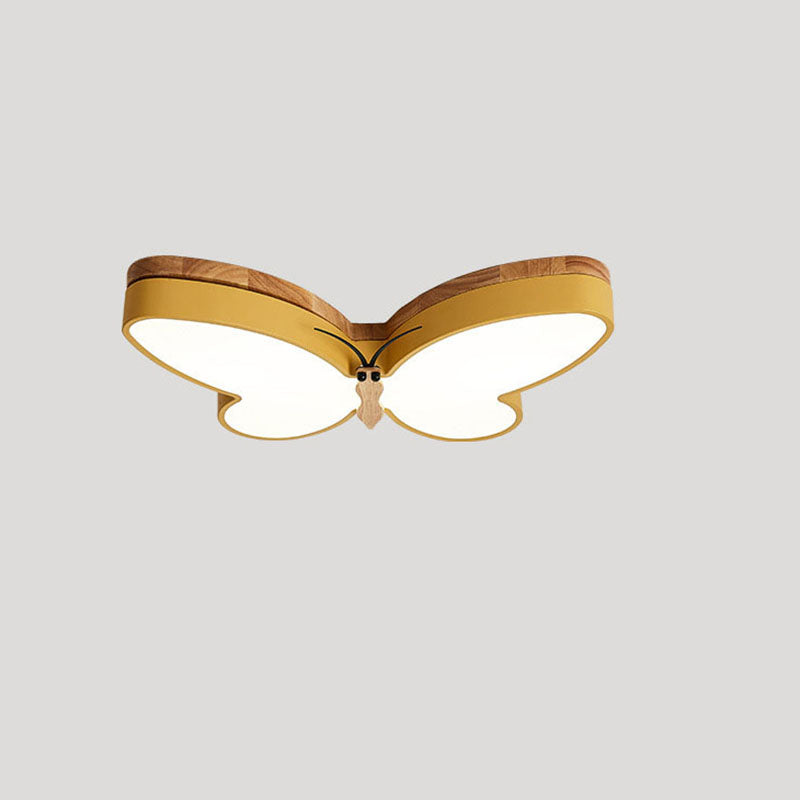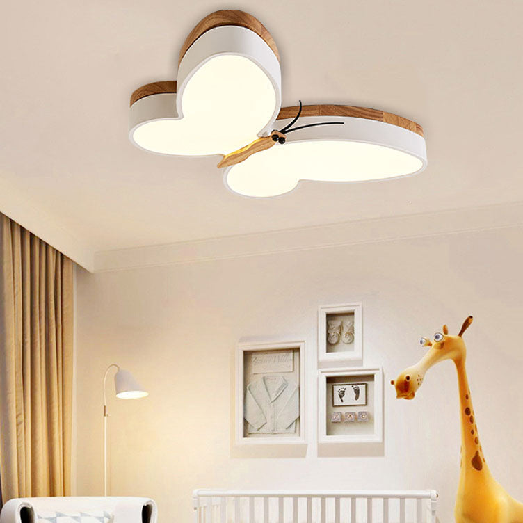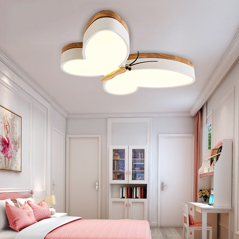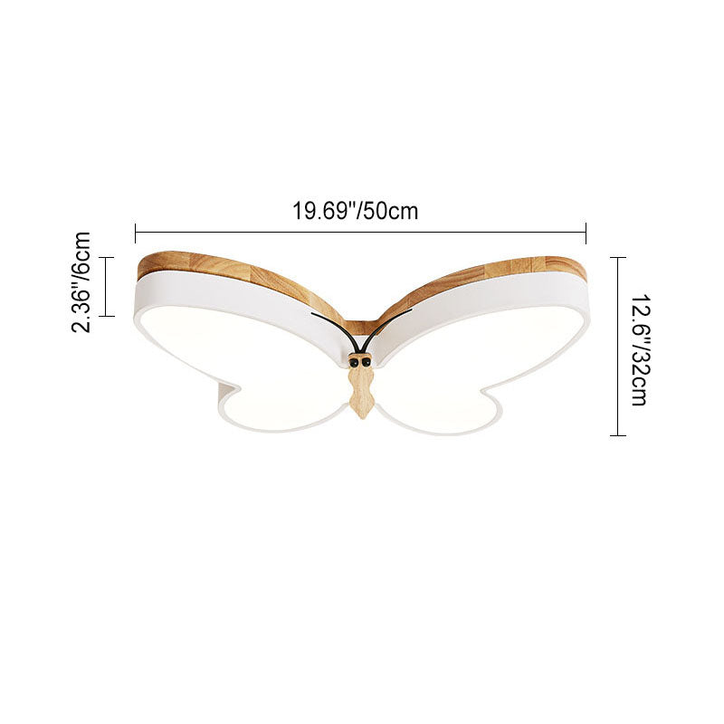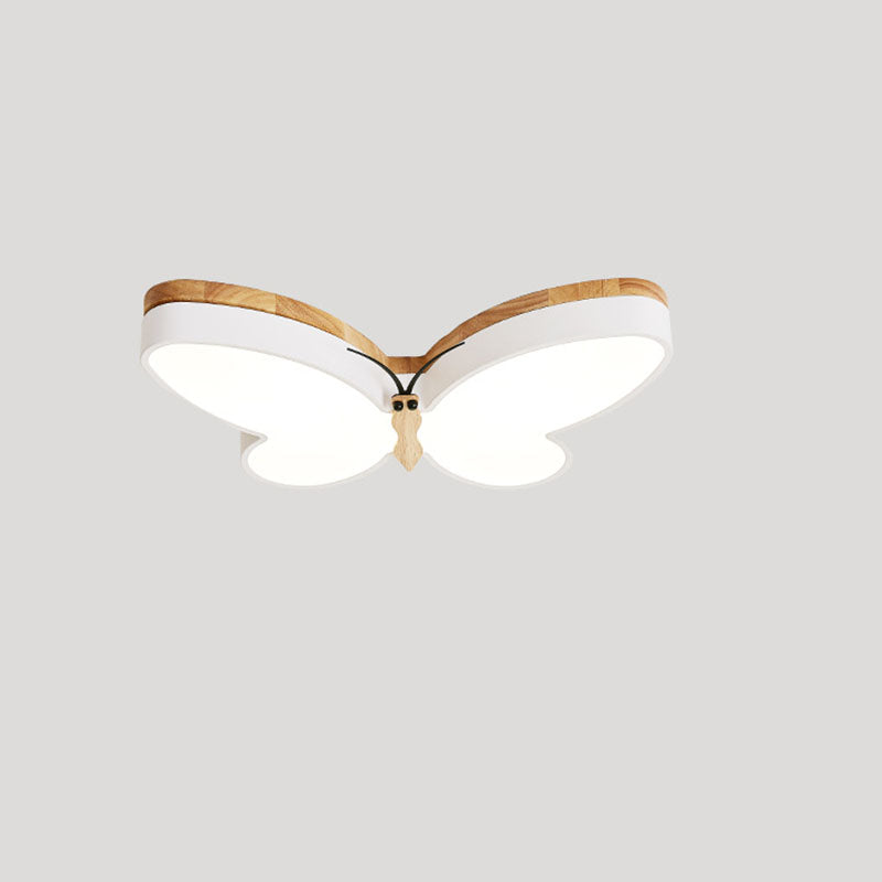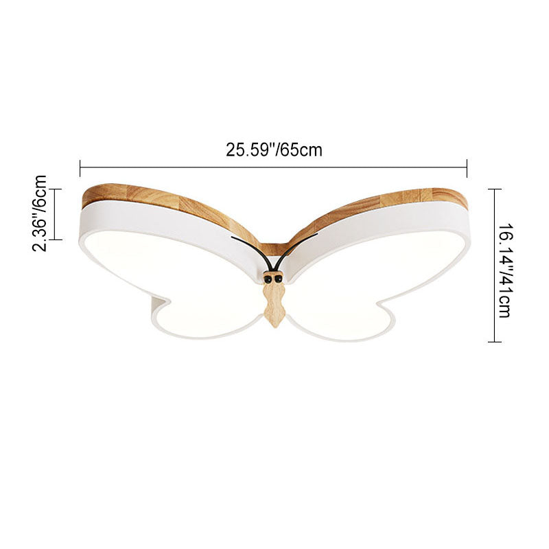 Contemporary Creative Butterfly Rubberwood Metal Acrylic LED Flush Mount Ceiling Light For Bedroom