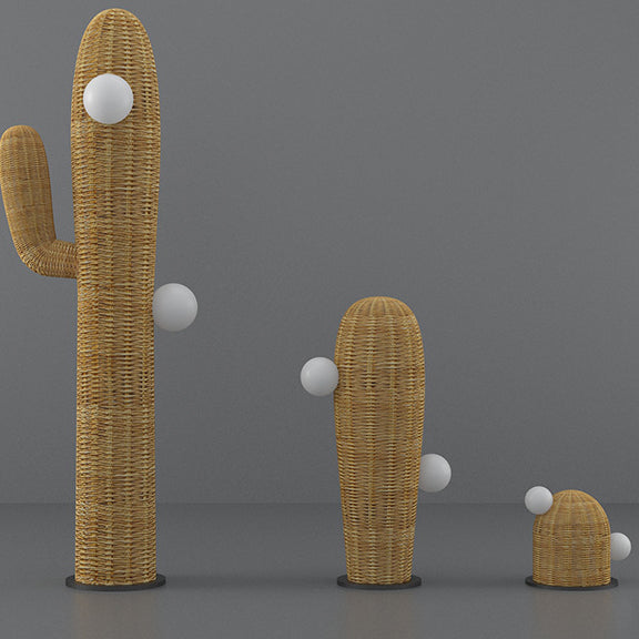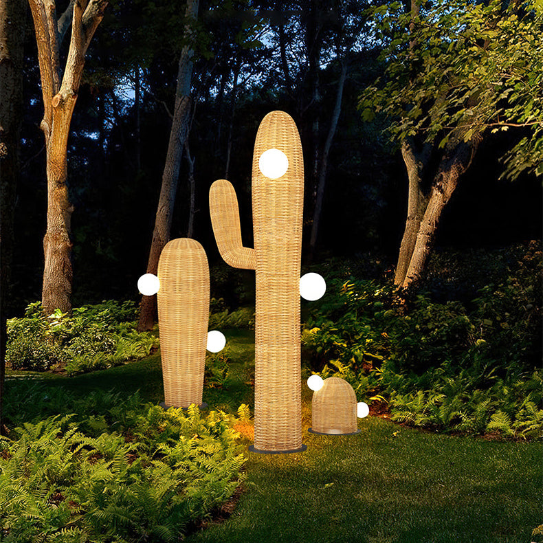 Contemporary Creative Cactus Waterproof Rubber Rattan Stainless Steel 2 - Light Standing Floor Lamp For Outdoor Patio