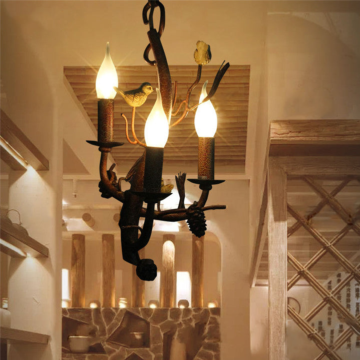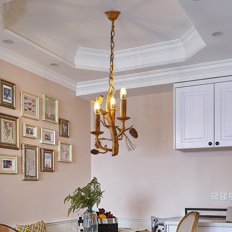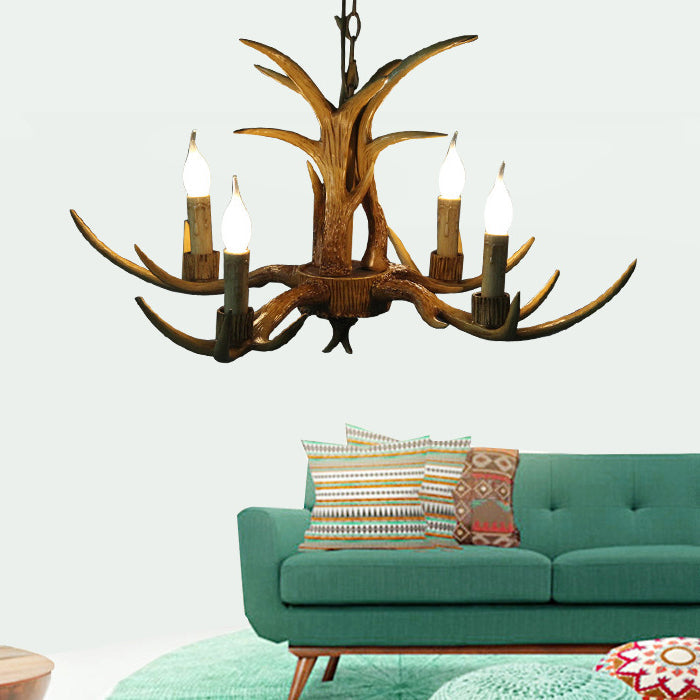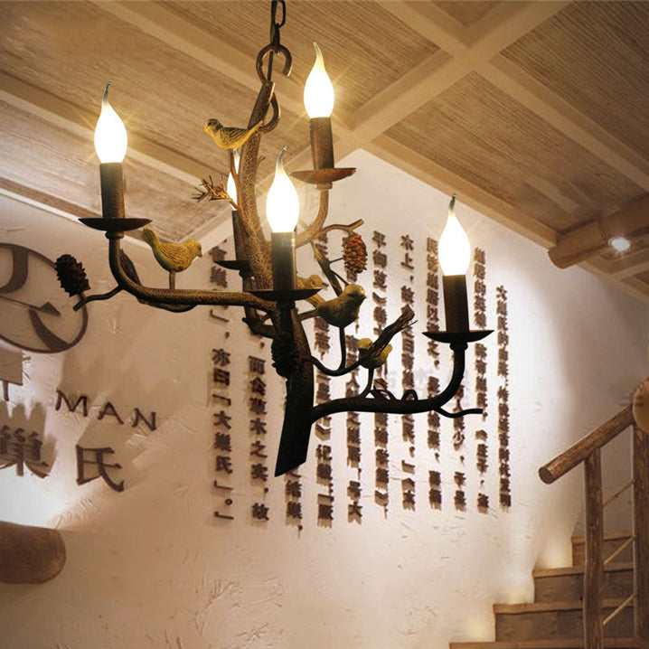 Contemporary Creative Candle Iron Resin 3/5 Light Chandelier For Living Room