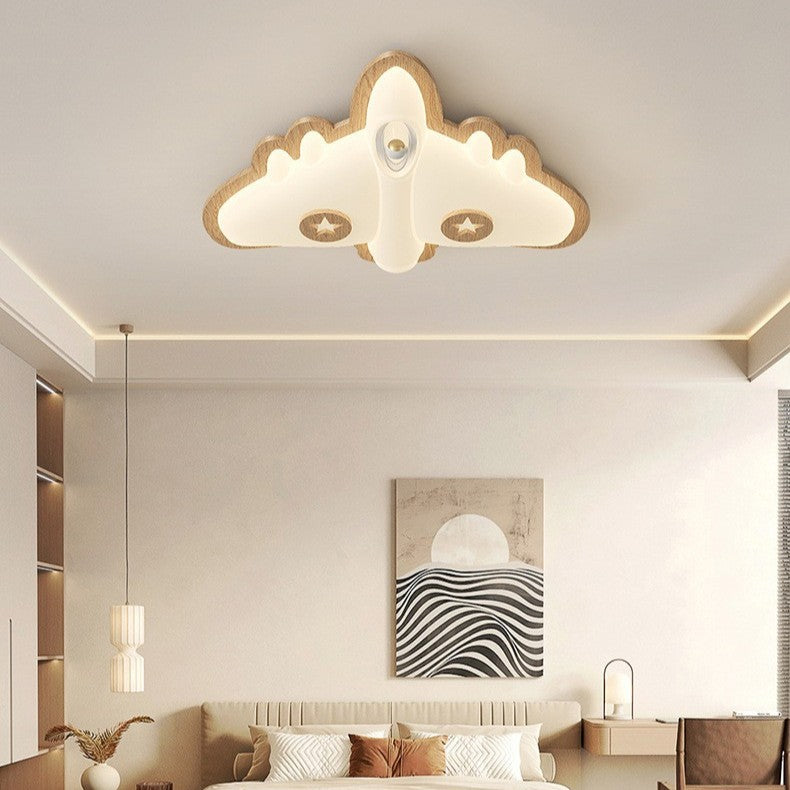 Contemporary Creative Cartoon Aircraft PE Shade Solid Wood LED Flush Mount Ceiling Light For Bedroom
