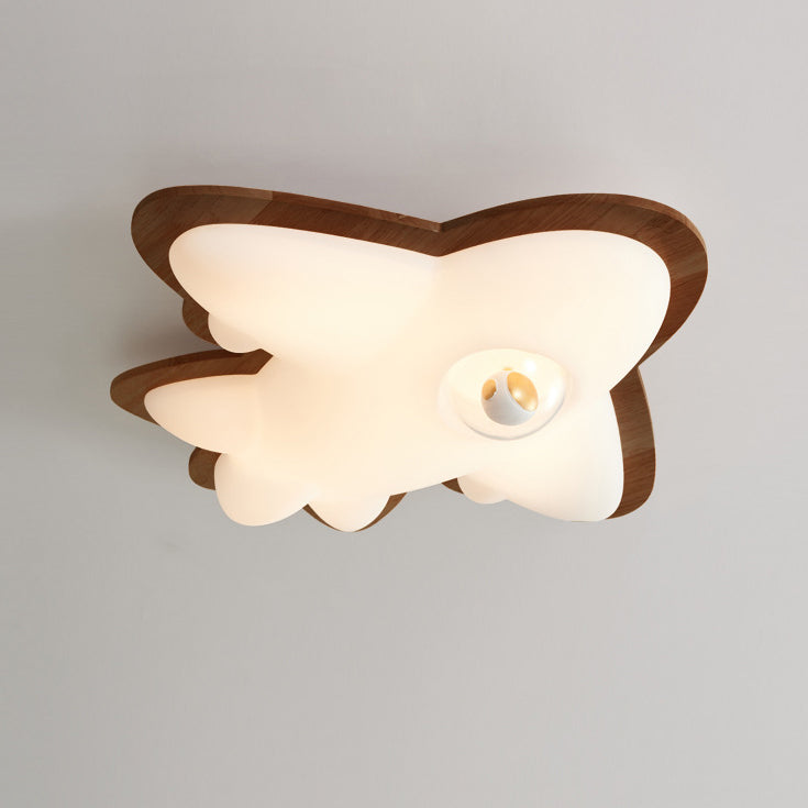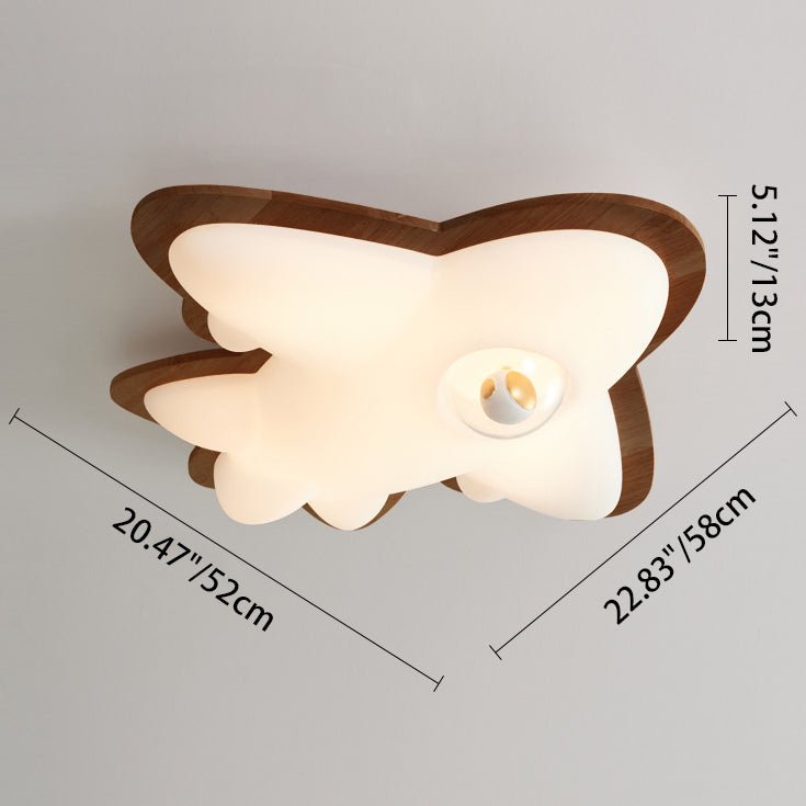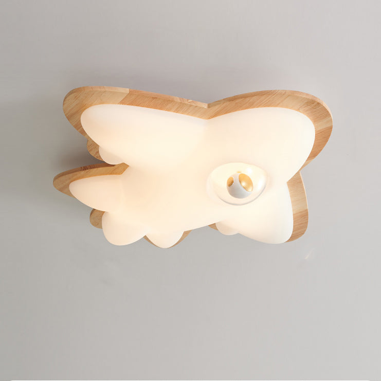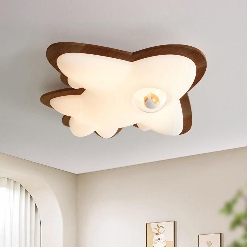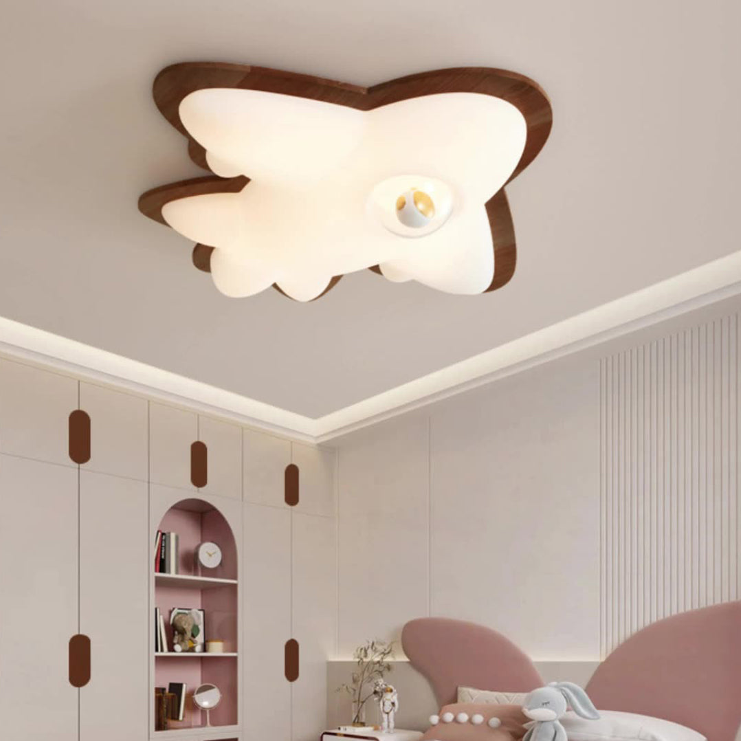 Contemporary Creative Cartoon Airplane Shape Iron Rubberwood Acrylic LED Flush Mount Ceiling Light For Bedroom