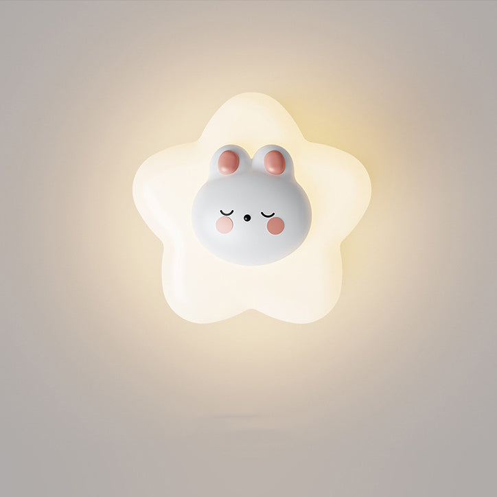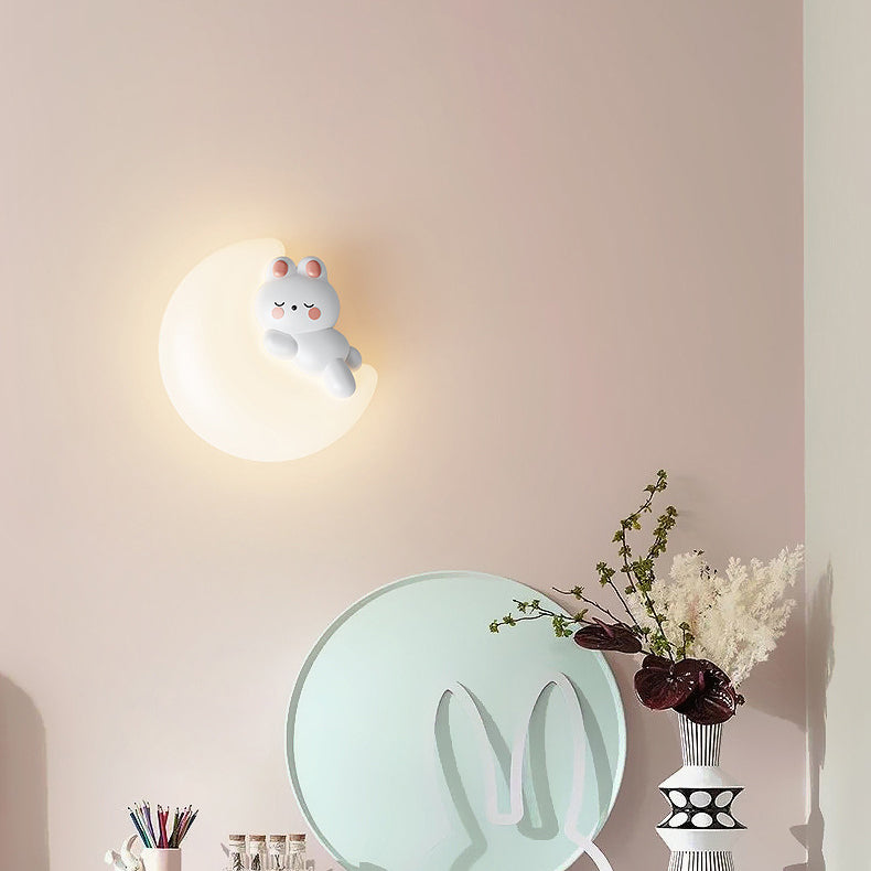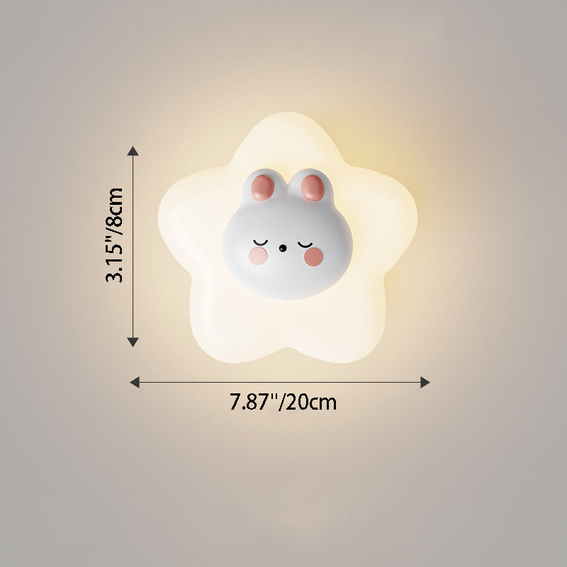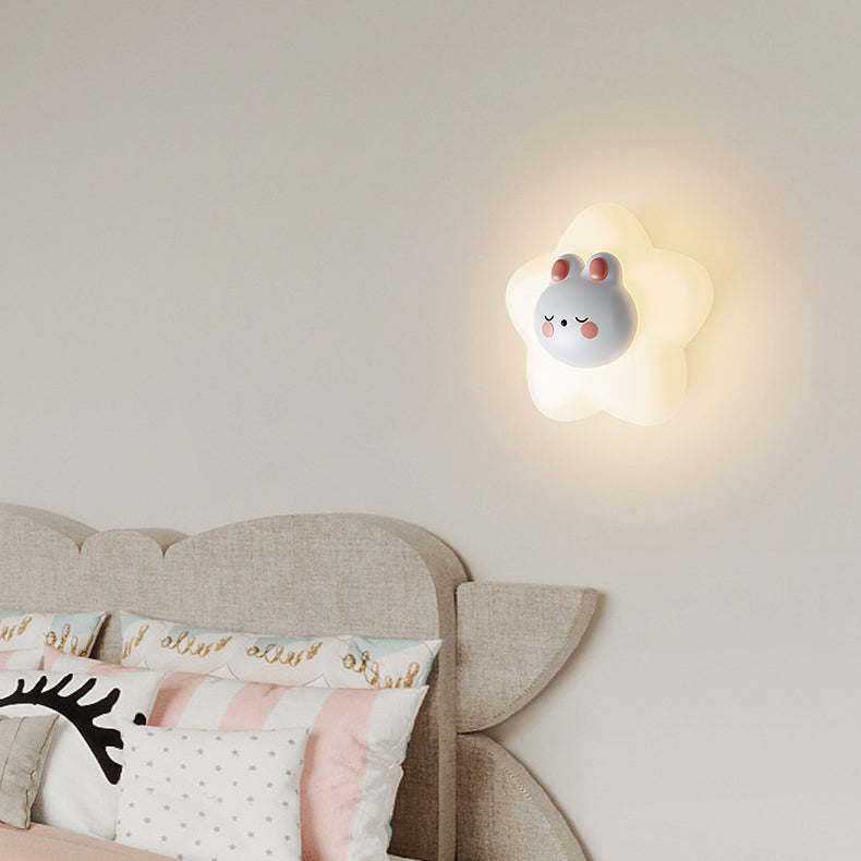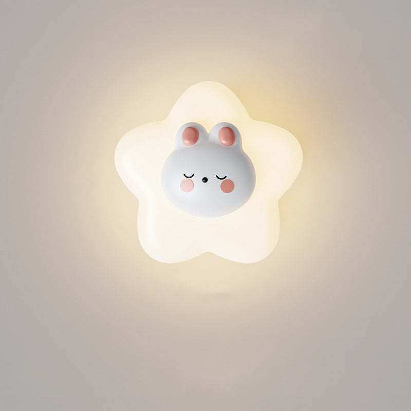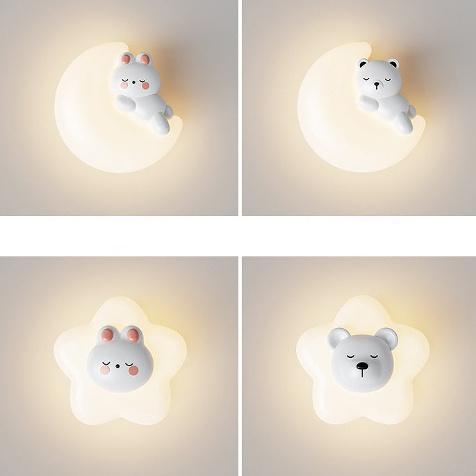 Contemporary Creative Cartoon Animal Rabbit Bear Star Moon Shape PE Iron LED Wall Sconce Lamp For Living Room