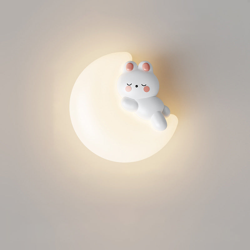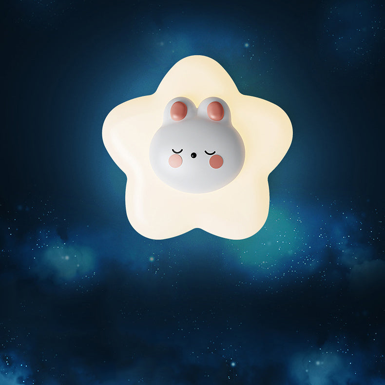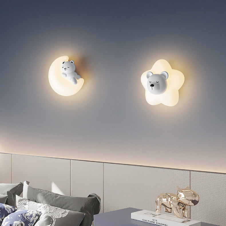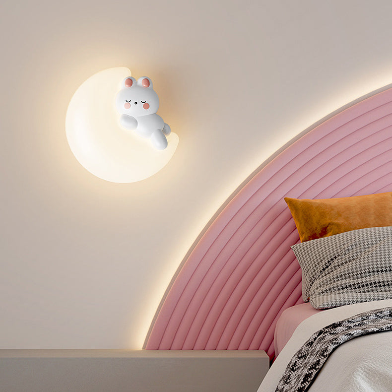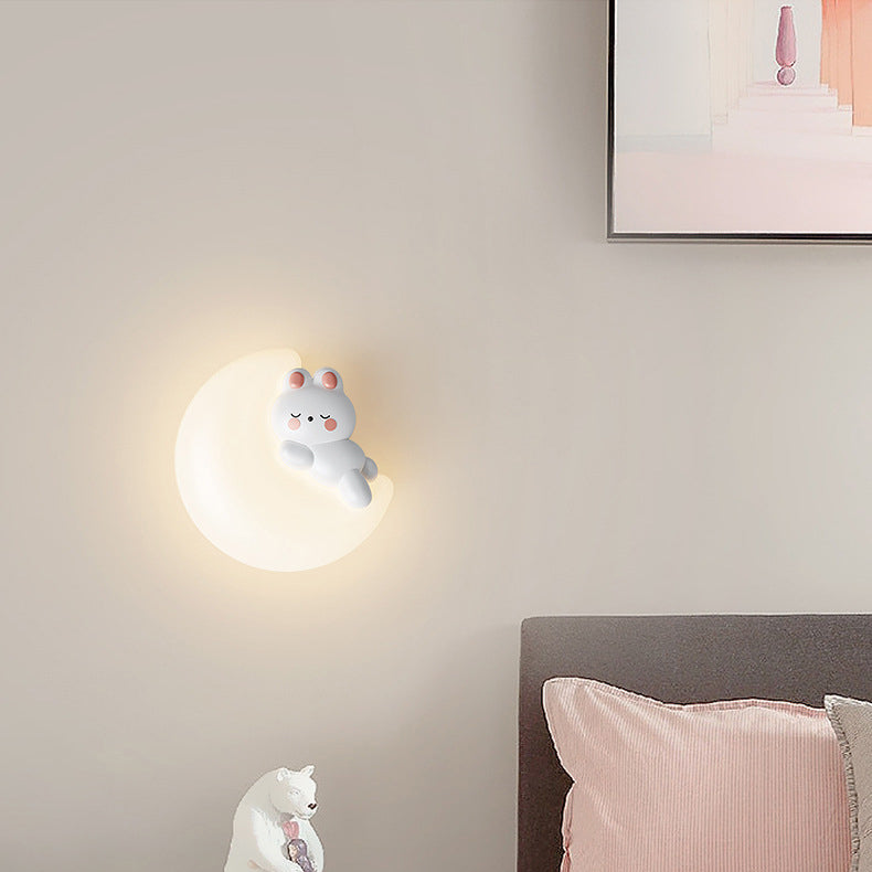 Contemporary Creative Cartoon Animal Rabbit Bear Star Moon Shape PE Iron LED Wall Sconce Lamp For Living Room