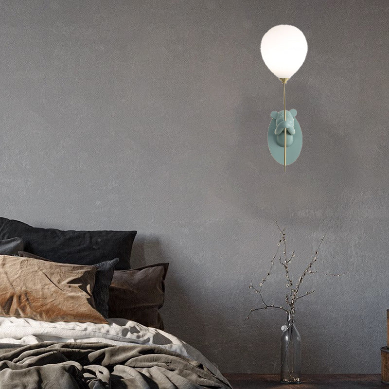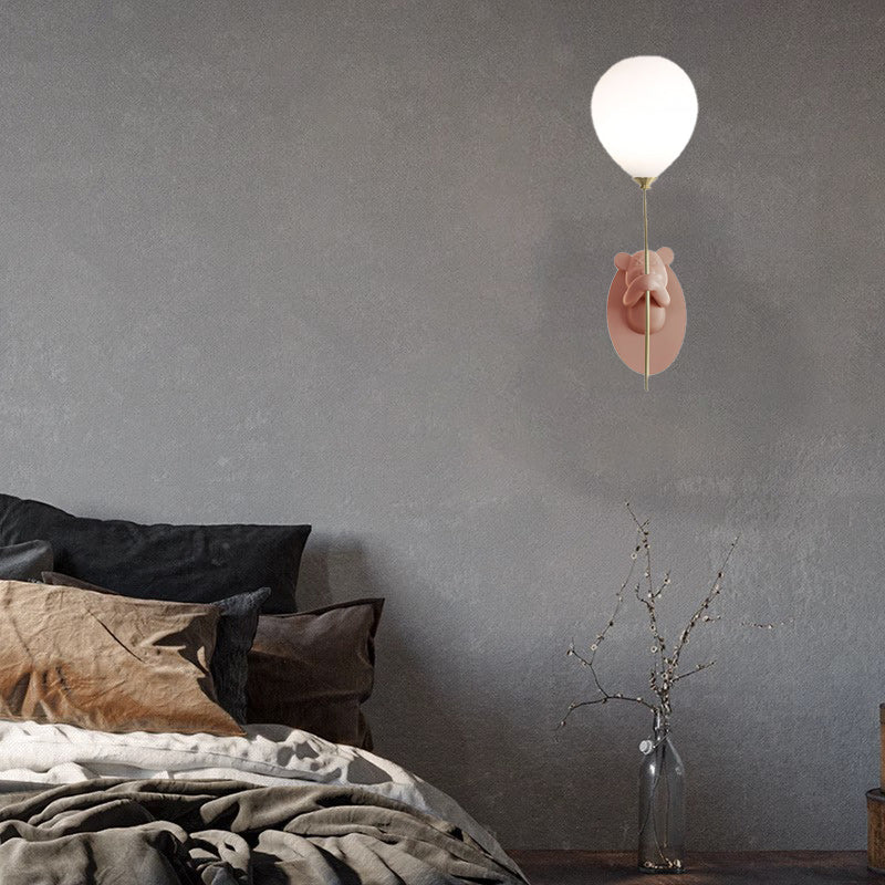 Contemporary Creative Cartoon Bear Balloon Iron Resin Glass 1-Light Wall Sconce Lamp For Bedroom