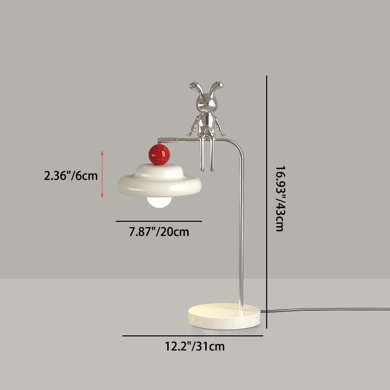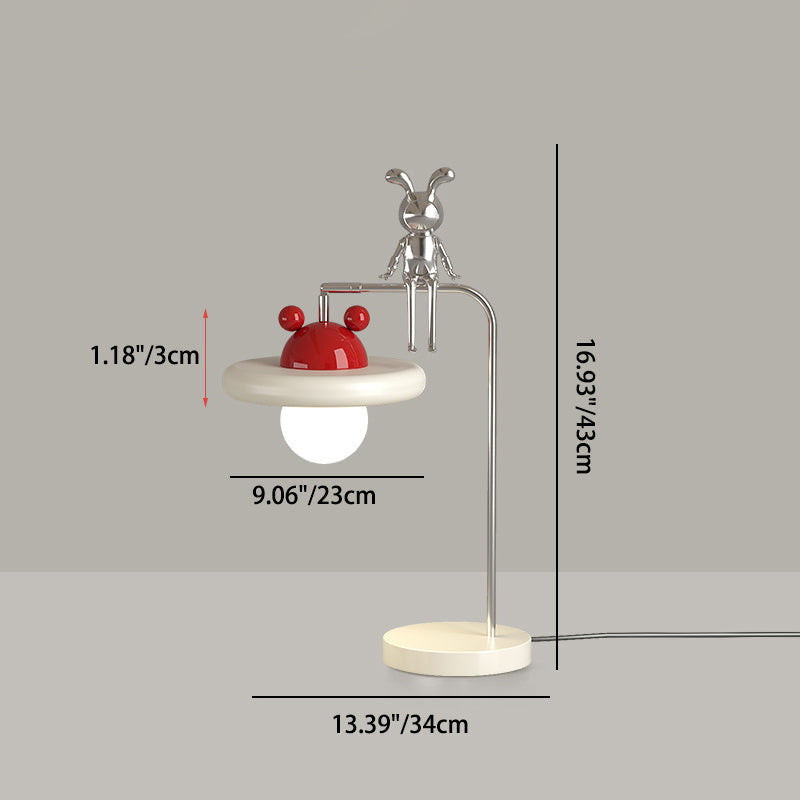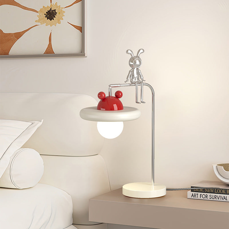 Contemporary Creative Cartoon Bunny Bear Sphere Disc Iron Hardware 1-Light Table Lamp For Bedroom