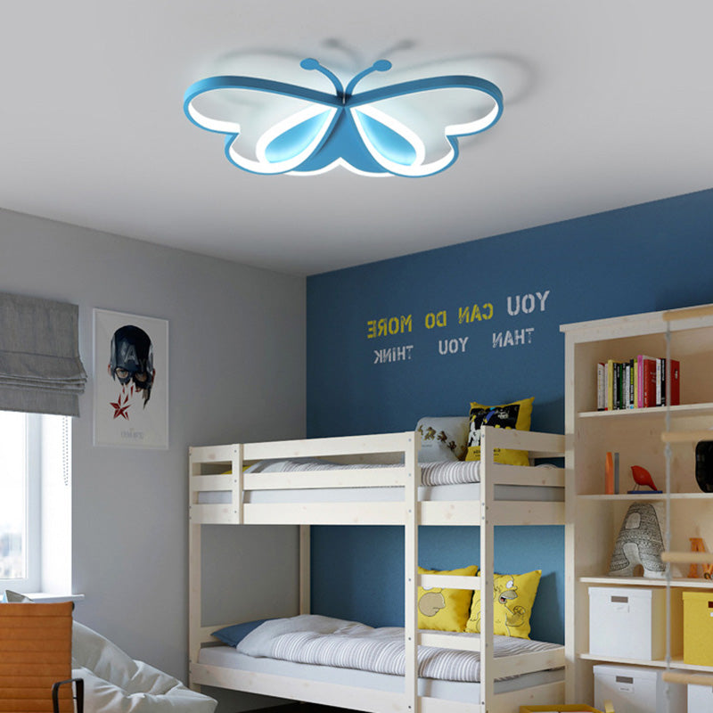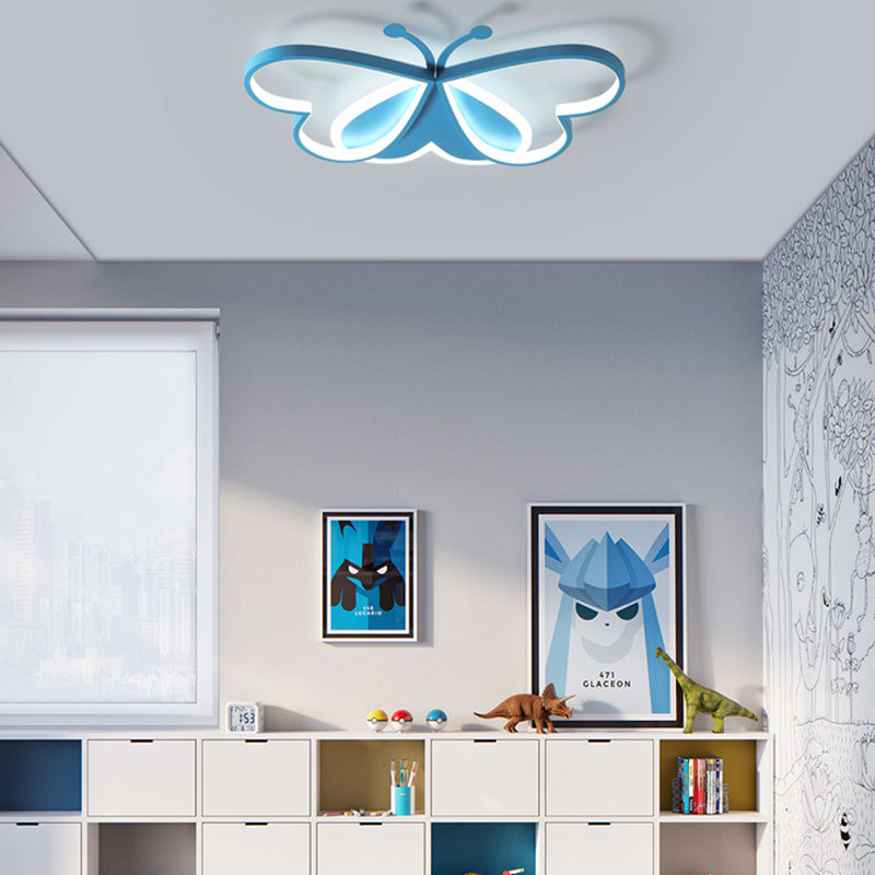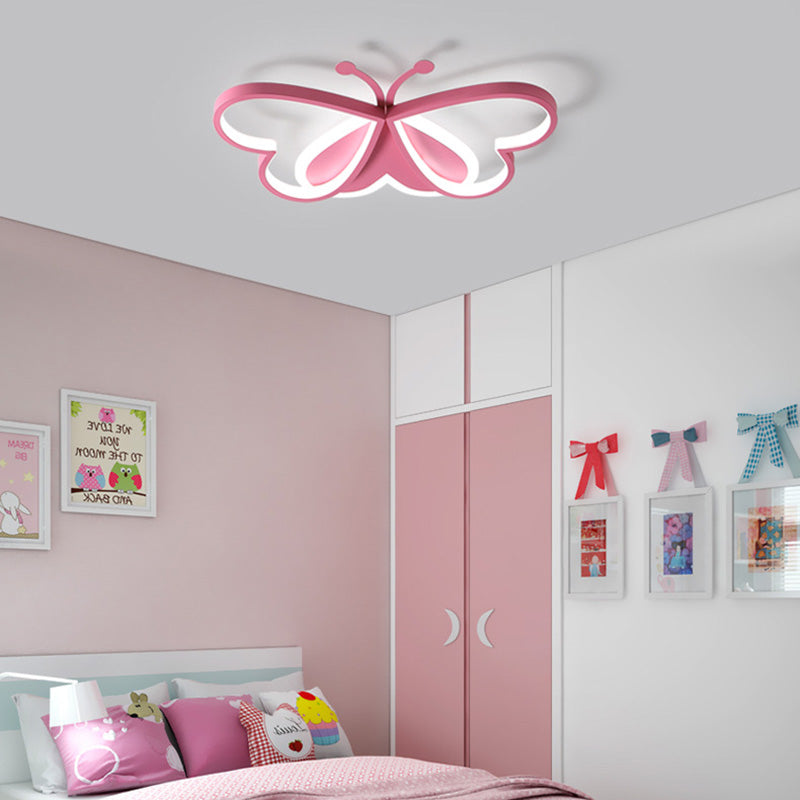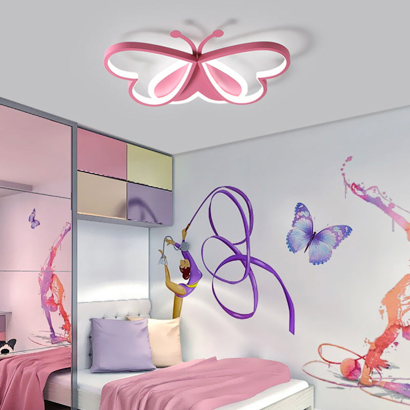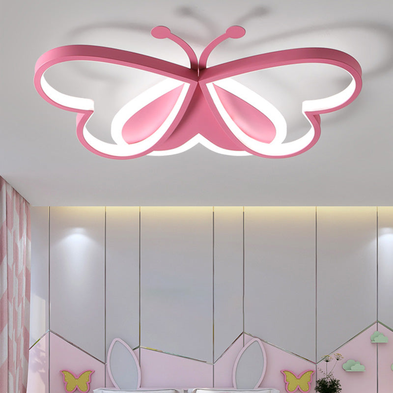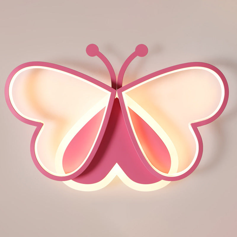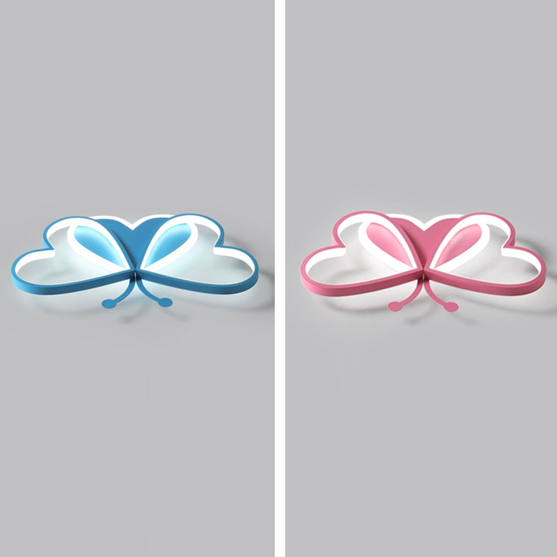 Contemporary Creative Cartoon Butterfly Heart Iron Acrylic LED Flush Mount Ceiling Light For Bedroom