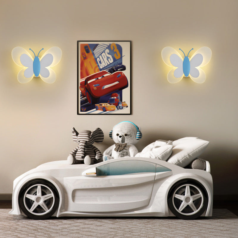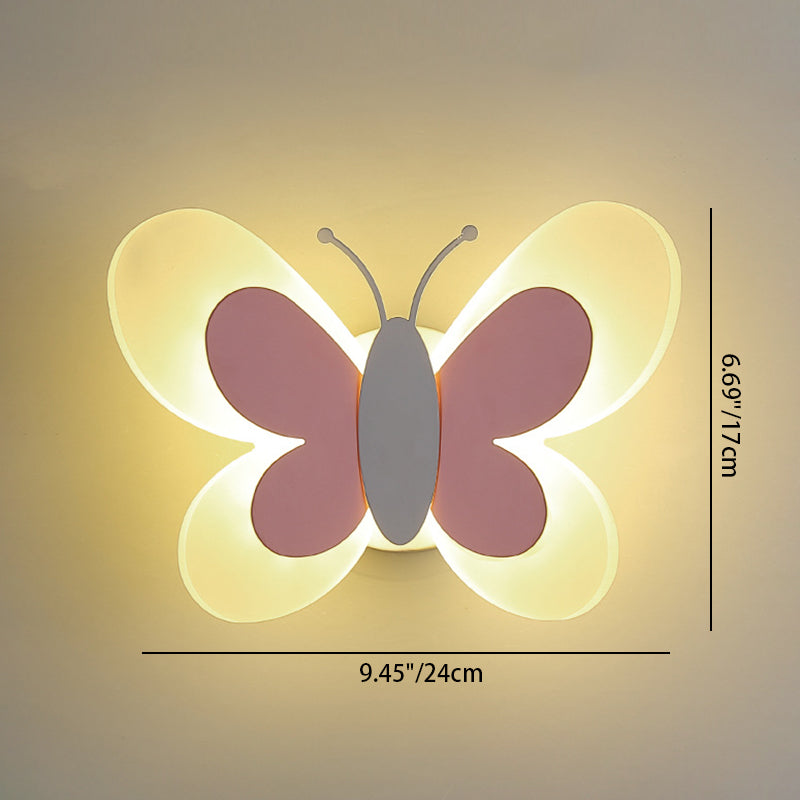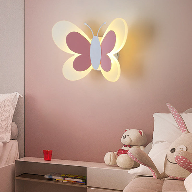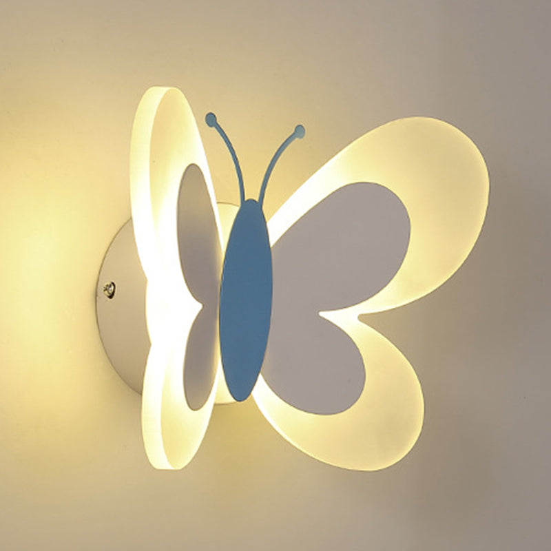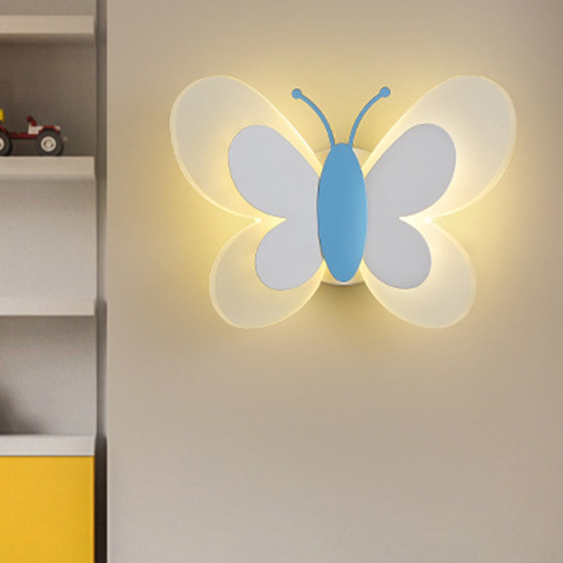 Contemporary Creative Cartoon Butterfly Shape Iron Acrylic LED Wall Sconce Lamp For Bedroom