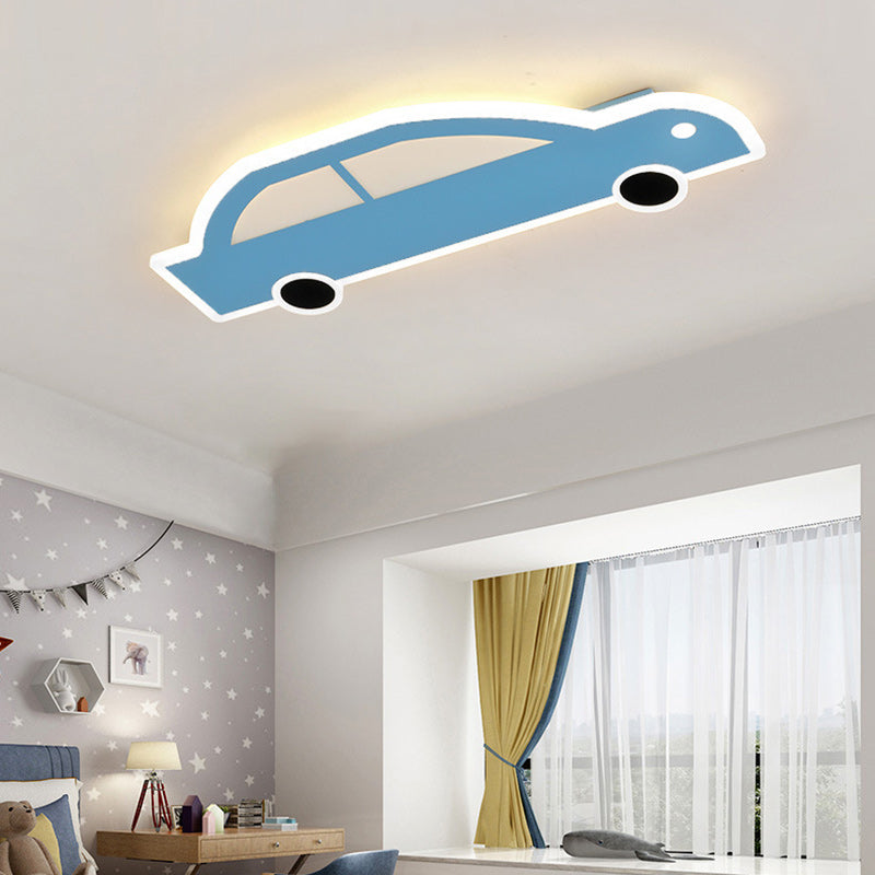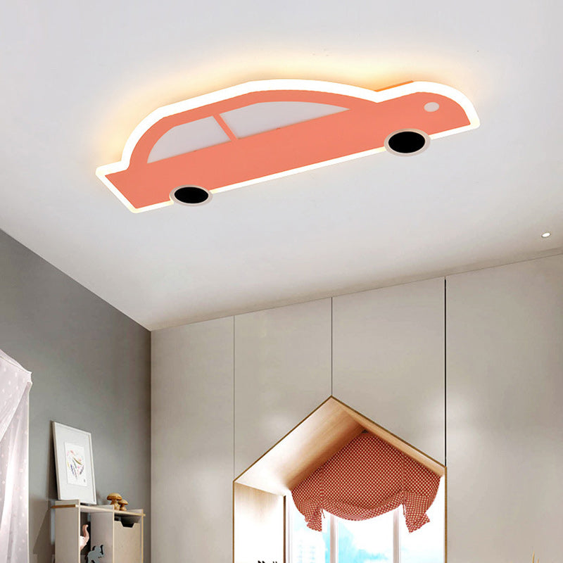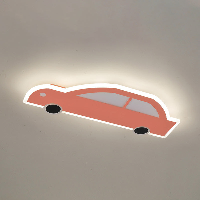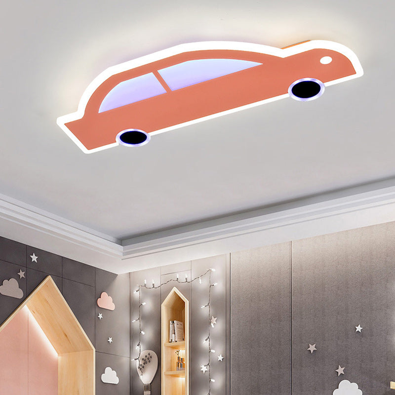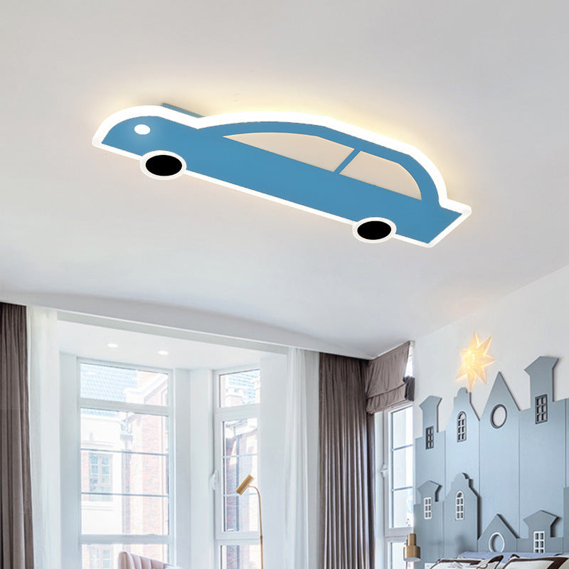 Contemporary Creative Cartoon Car Iron Acrylic LED Flush Mount Ceiling Light For Living Room