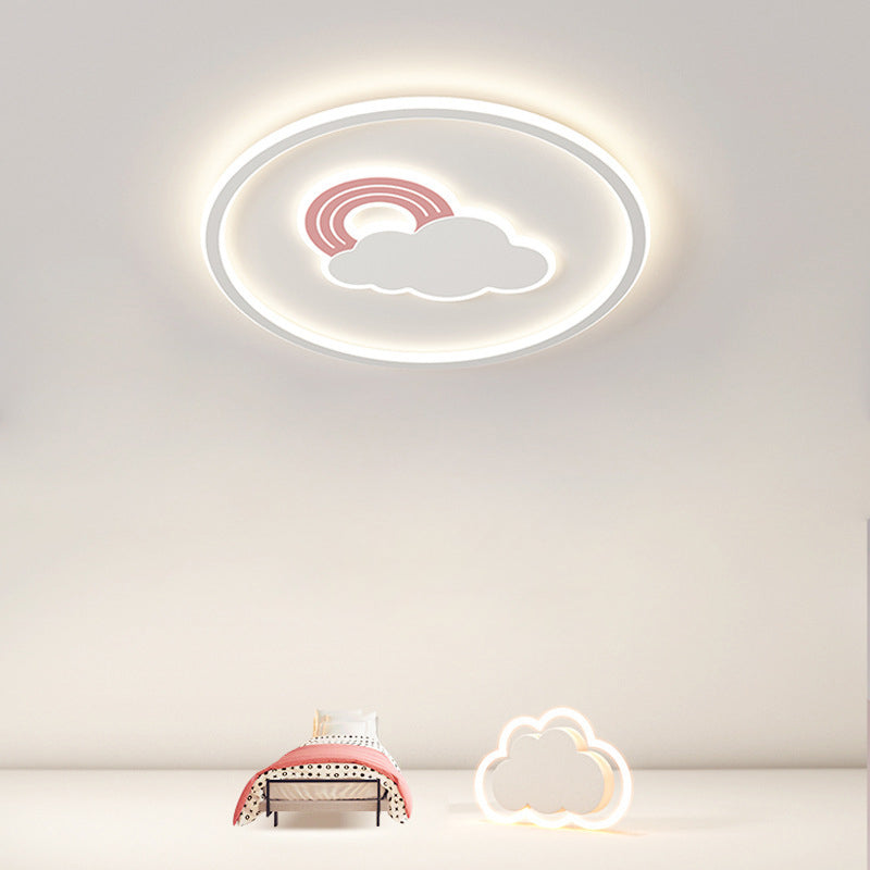 Contemporary Creative Cartoon Cloud Rainbow Acrylic LED Flush Mount Ceiling Light For Living Room
