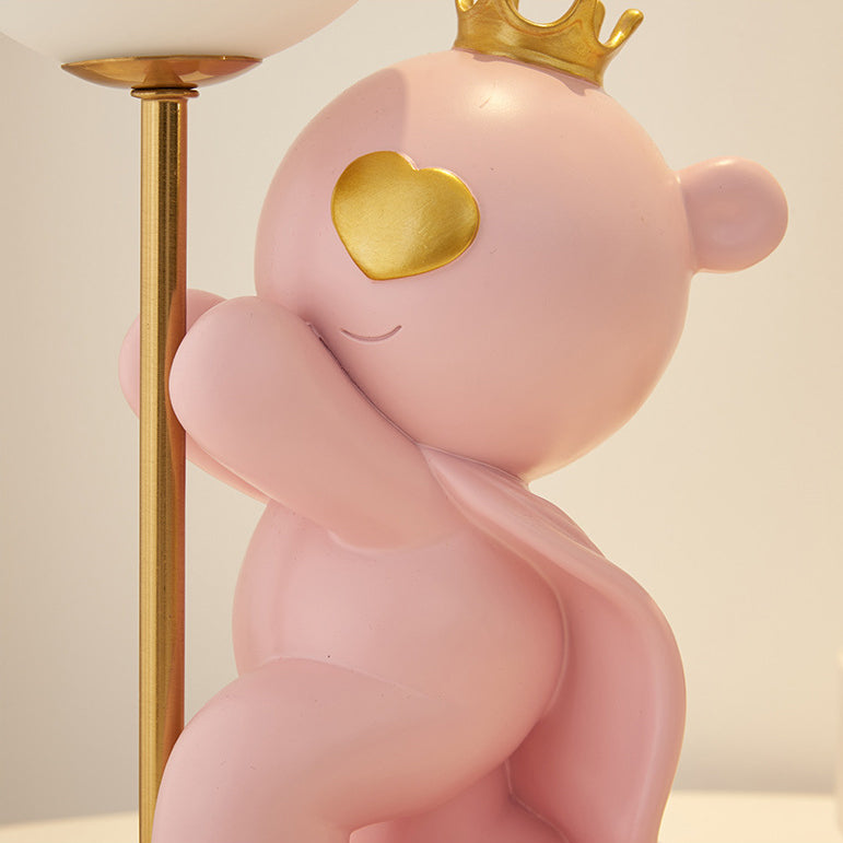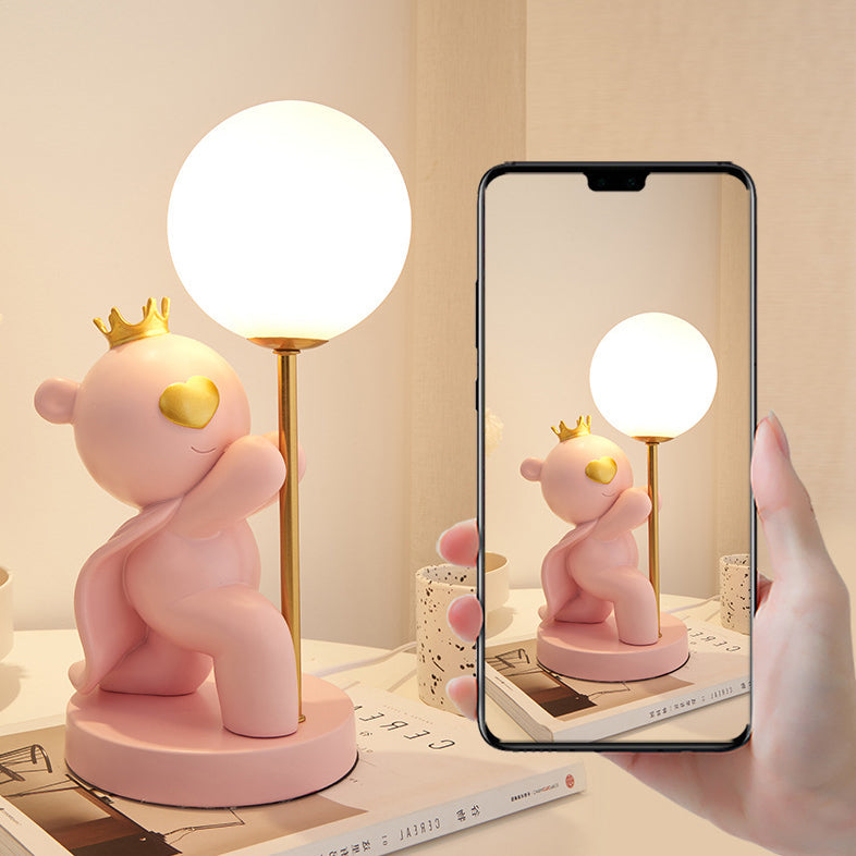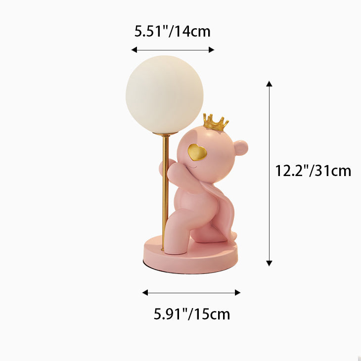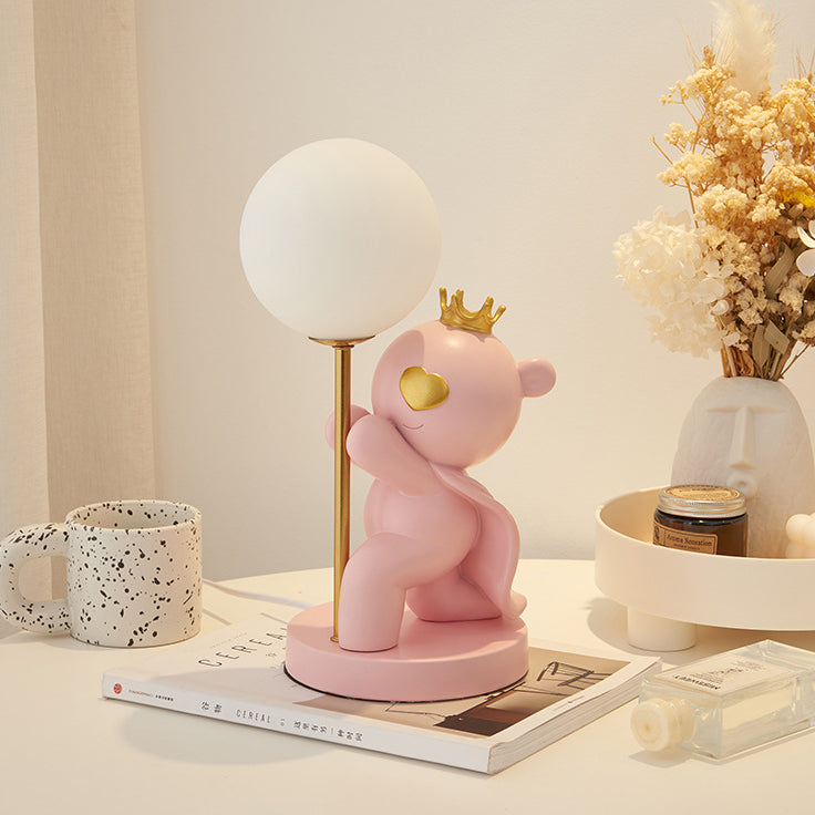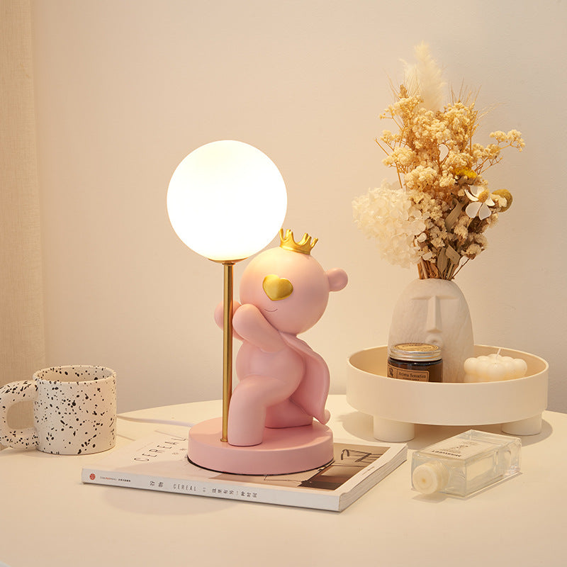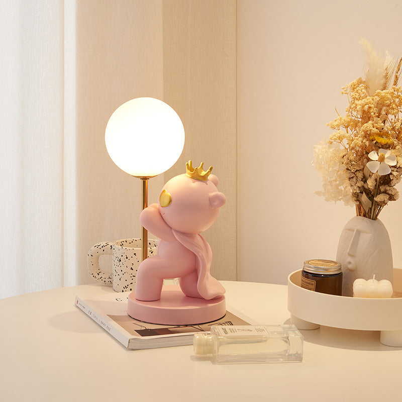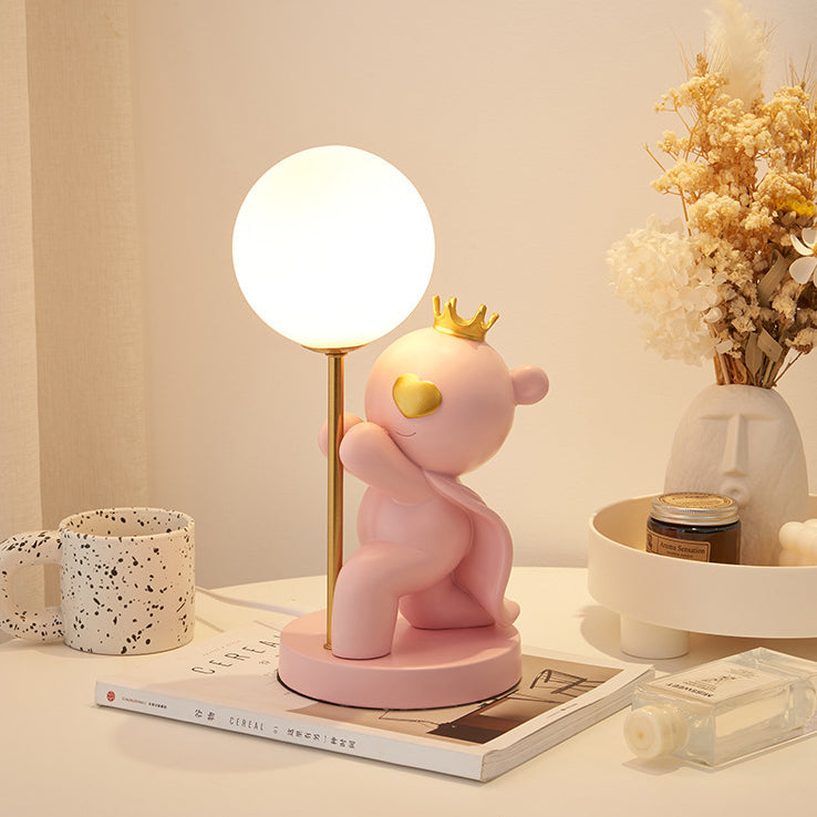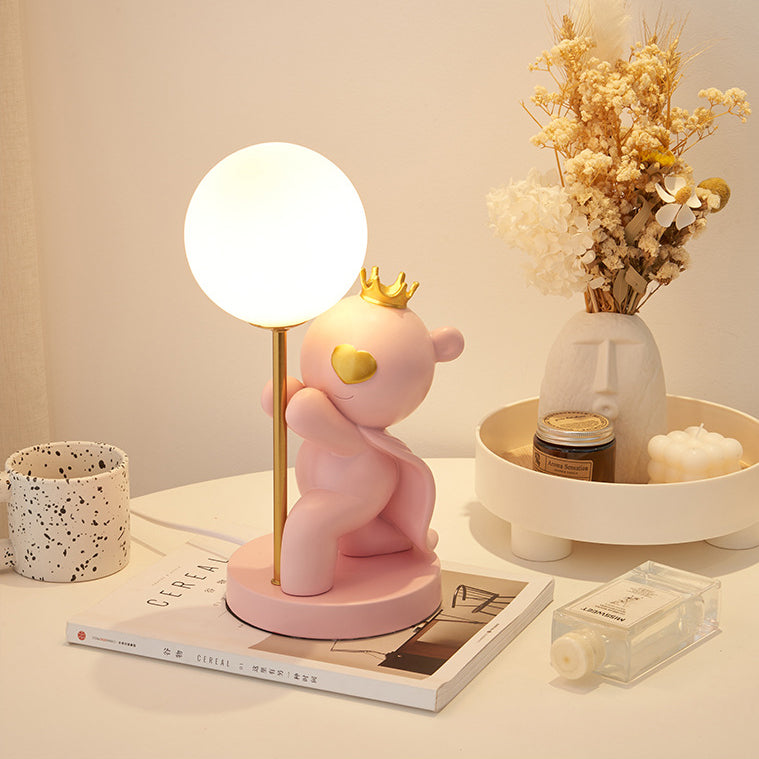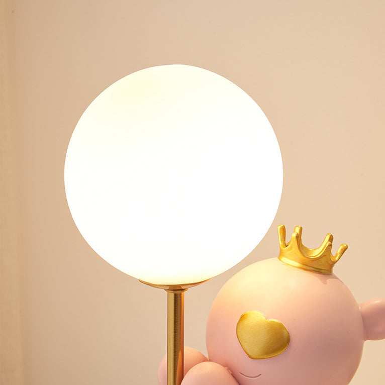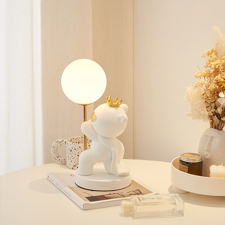 Contemporary Creative Cartoon Cute Crown Bear Round Resin Glass 1-Light Table Lamp For Bedroom