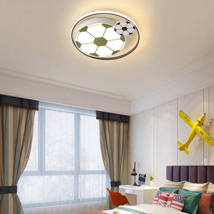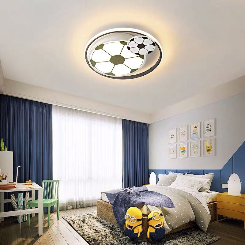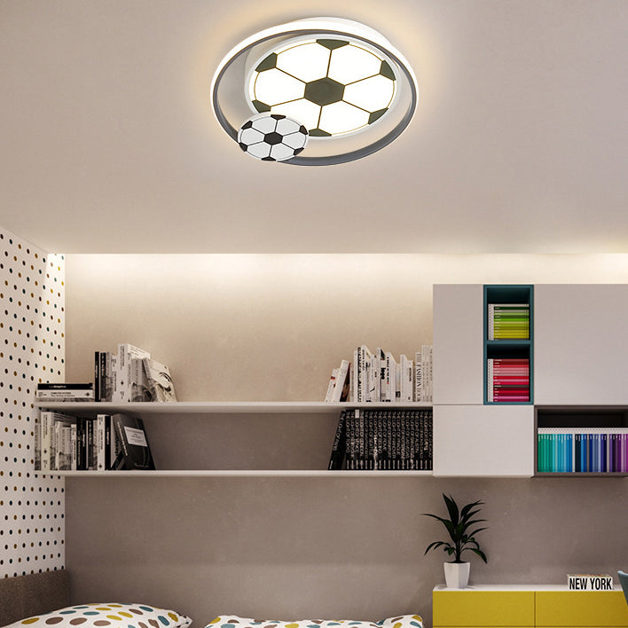 Contemporary Creative Cartoon Football Iron LED Kids Flush Mount Ceiling Light For Bedroom