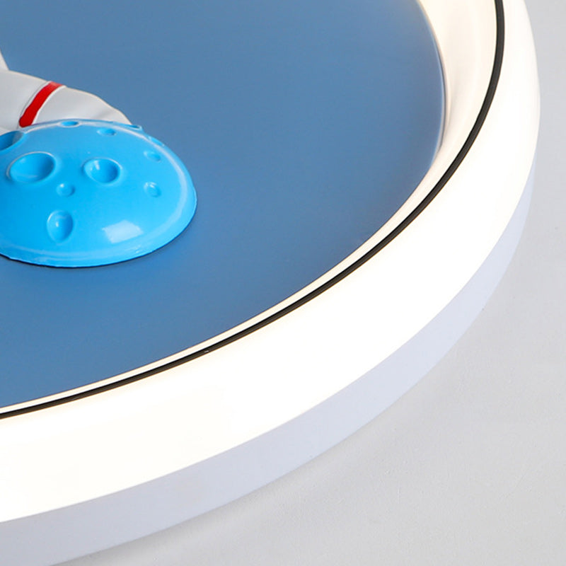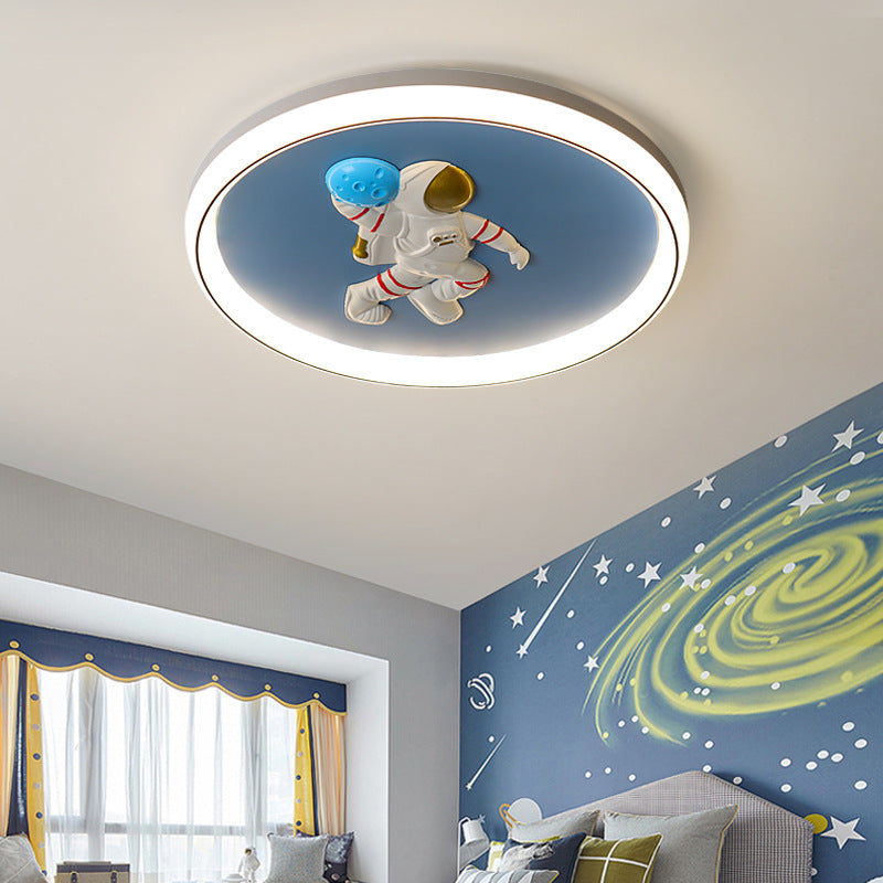 Contemporary Creative Cartoon Kids Astronaut Angel Round Aluminum Hardware Silicone Flush Mount Ceiling Light Kid Light For Bedroom