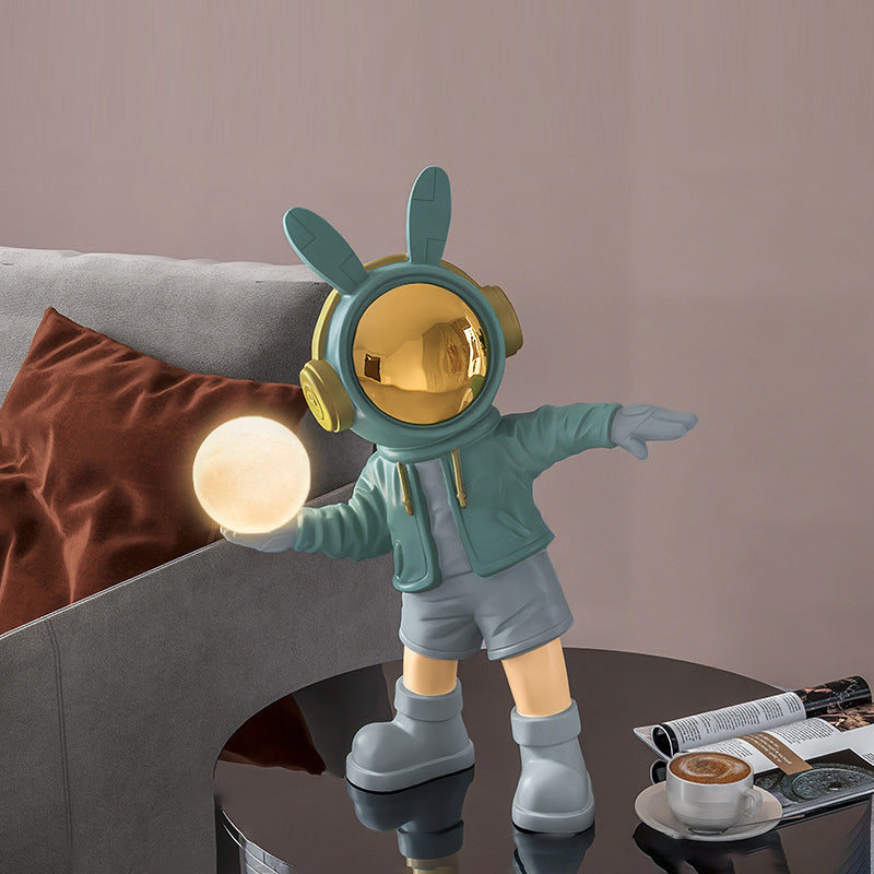 Contemporary Creative Cartoon Kids Astronaut Rabbit Resin PC LED Table Lamp For Bedroom