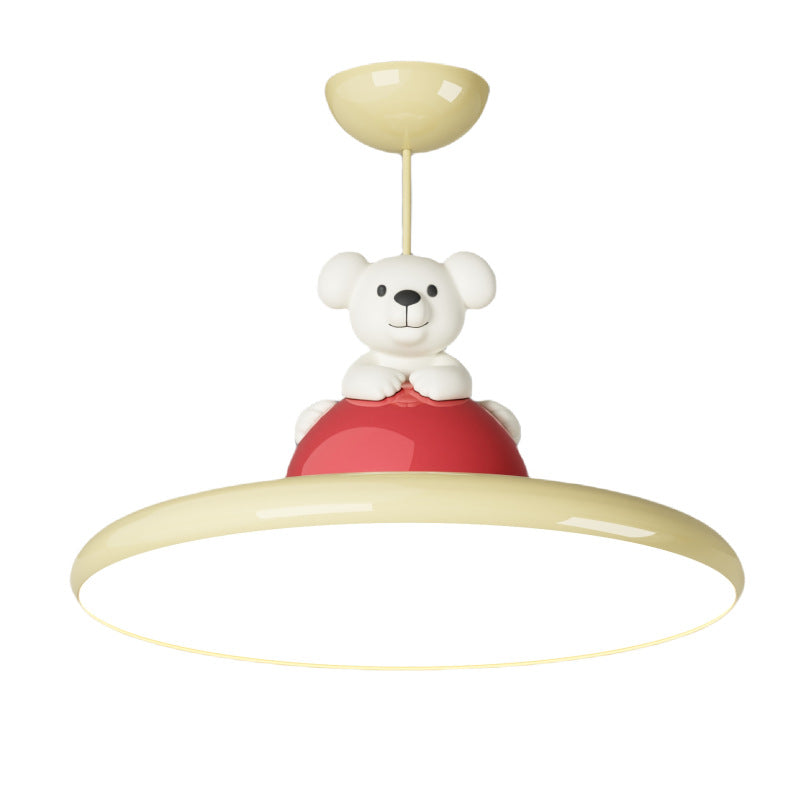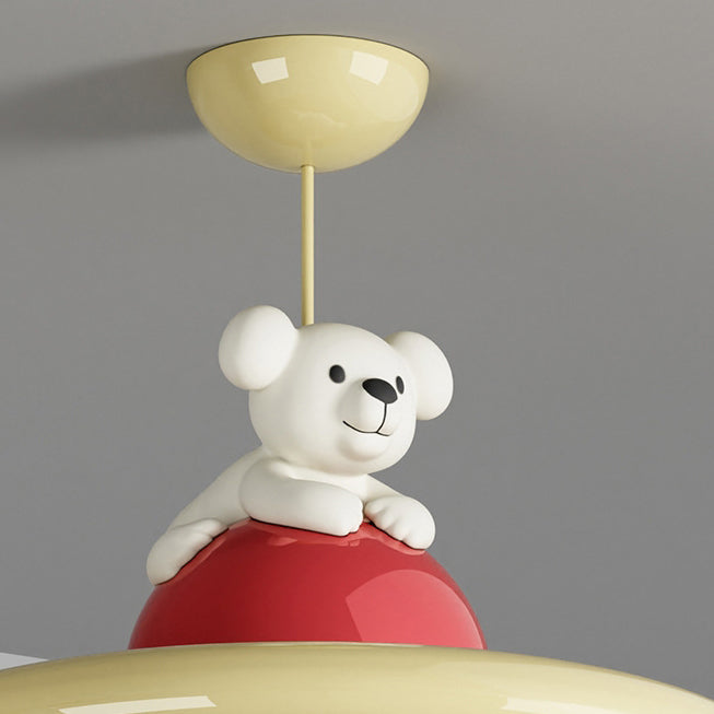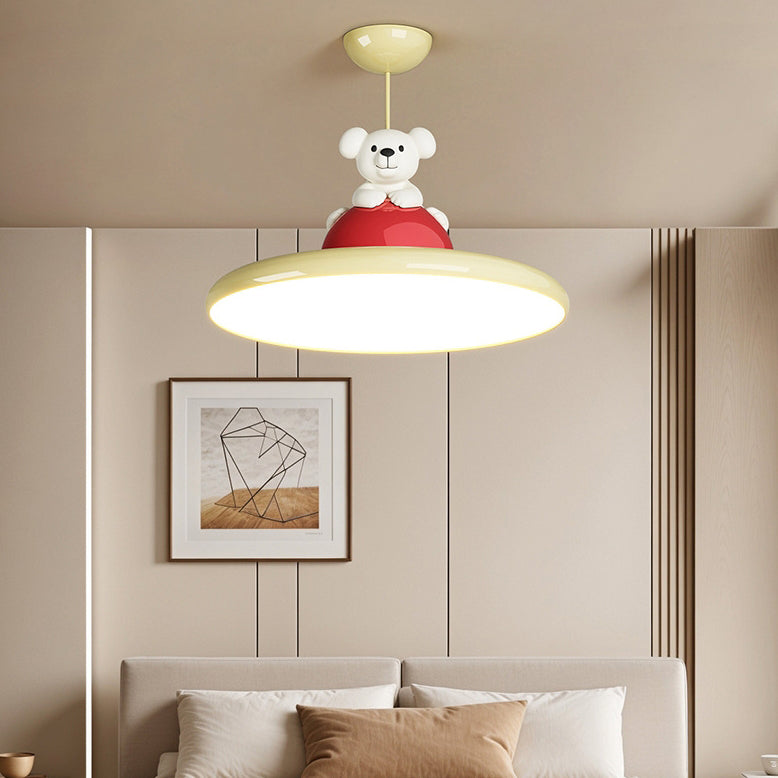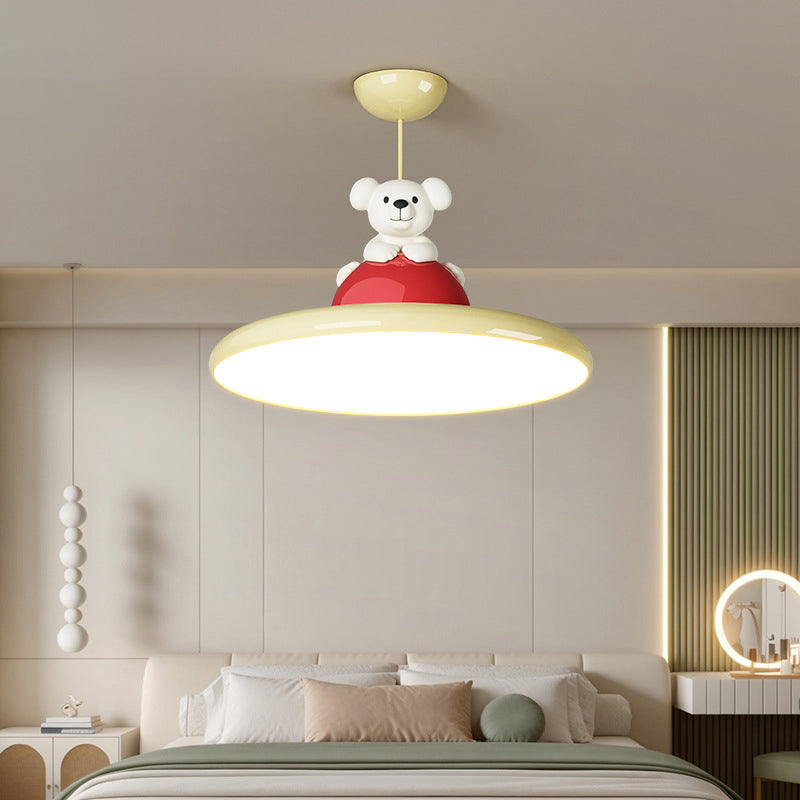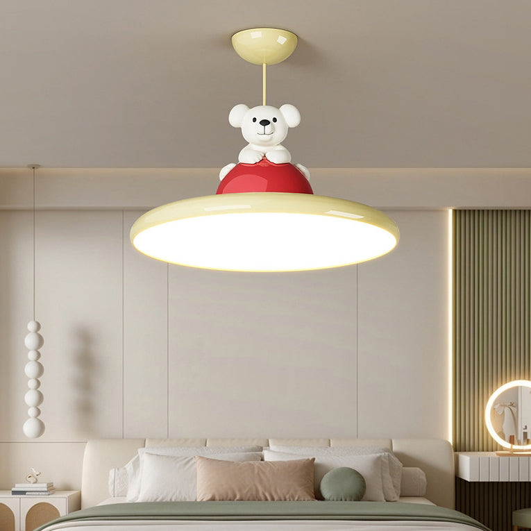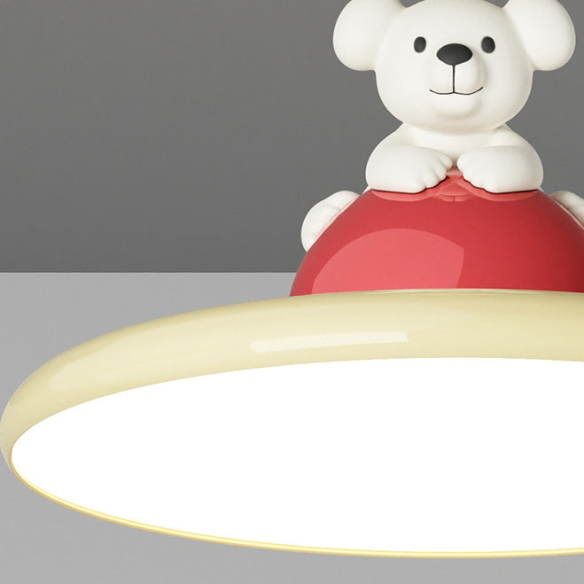 Contemporary Creative Cartoon Kids Bear Circle Iron Acrylic LED Semi-Flush Mount Lighting For Bedroom