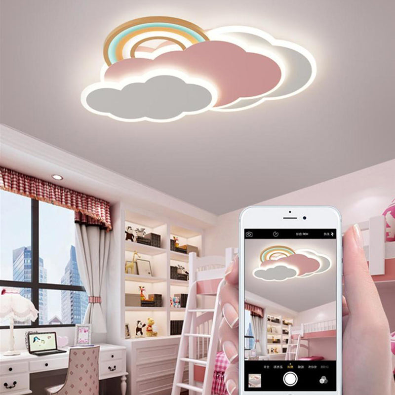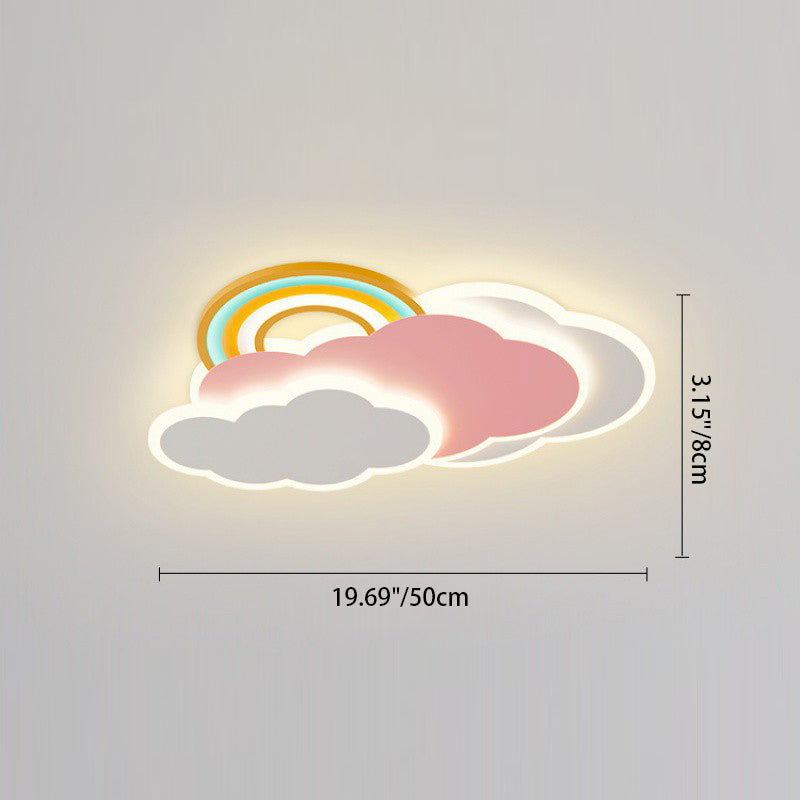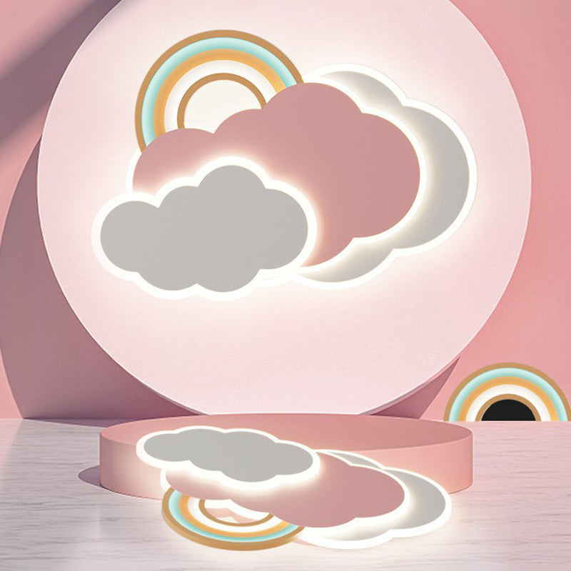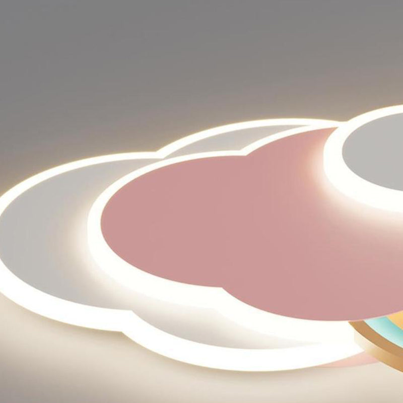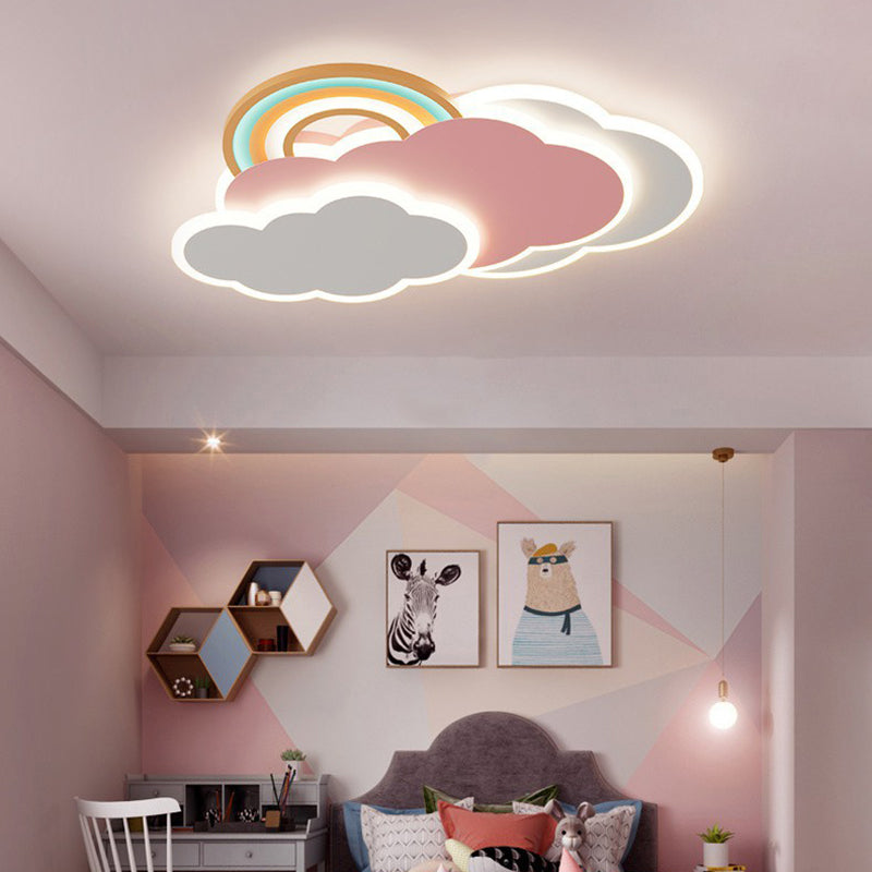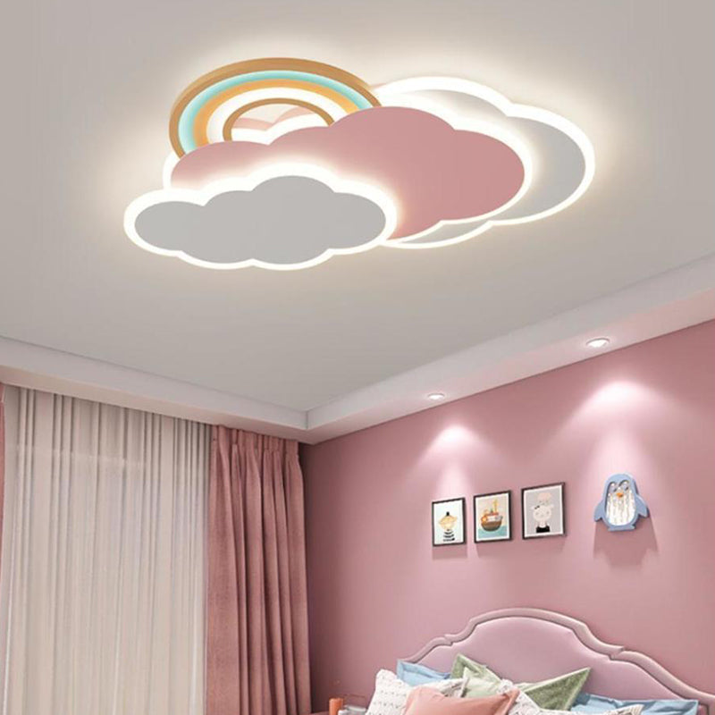 Contemporary Creative Cartoon Kids Cloud Rainbow Iron Acrylic LED Flush Mount Ceiling Light For Bedroom