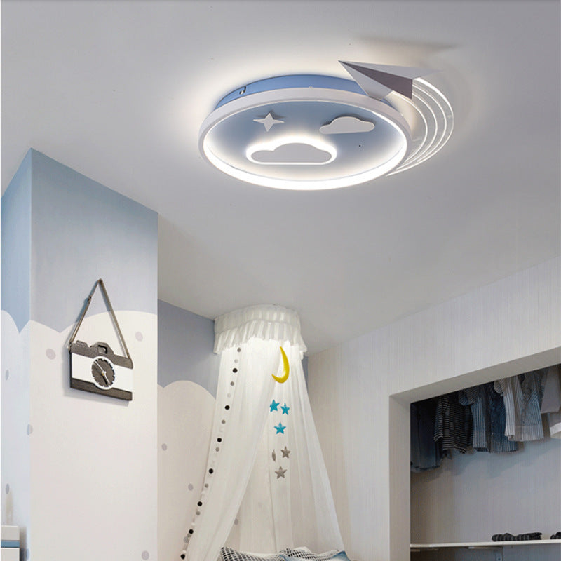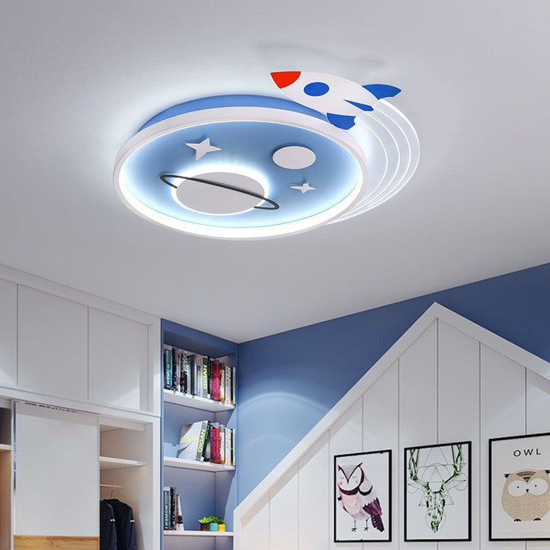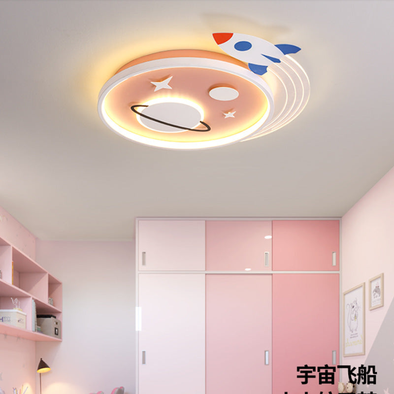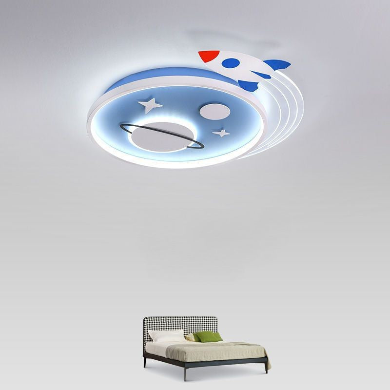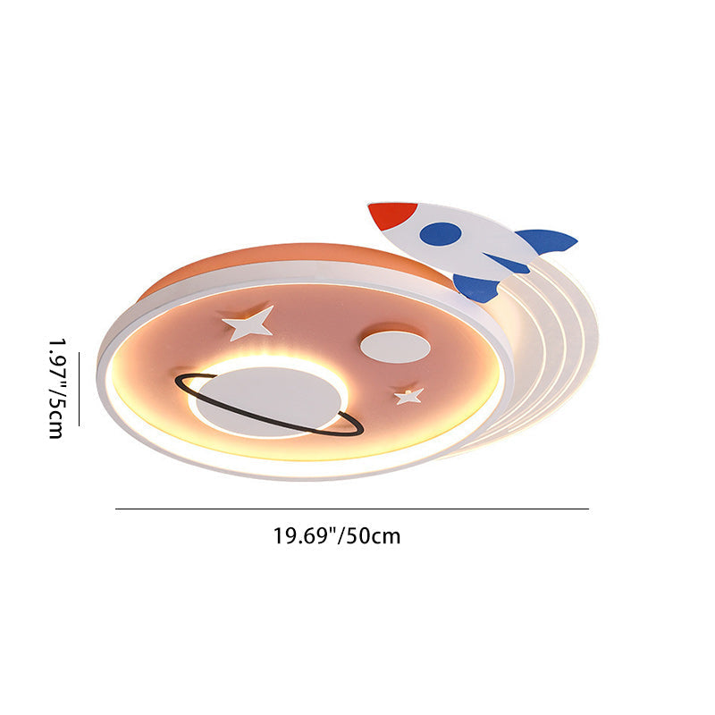 Contemporary Creative Cartoon Kids Rocket Planet Stars Round Iron Acrylic LED Flush Mount Ceiling Light For Bedroom