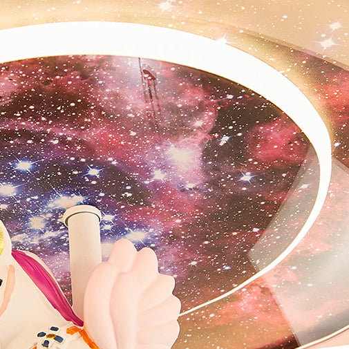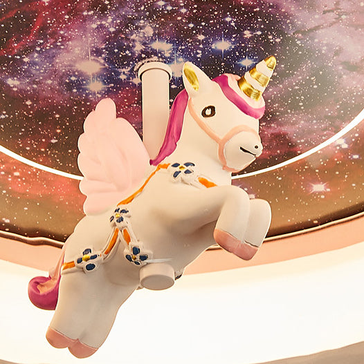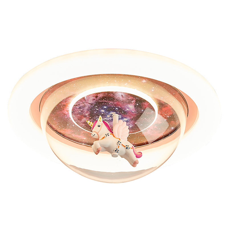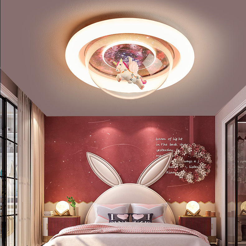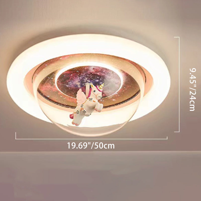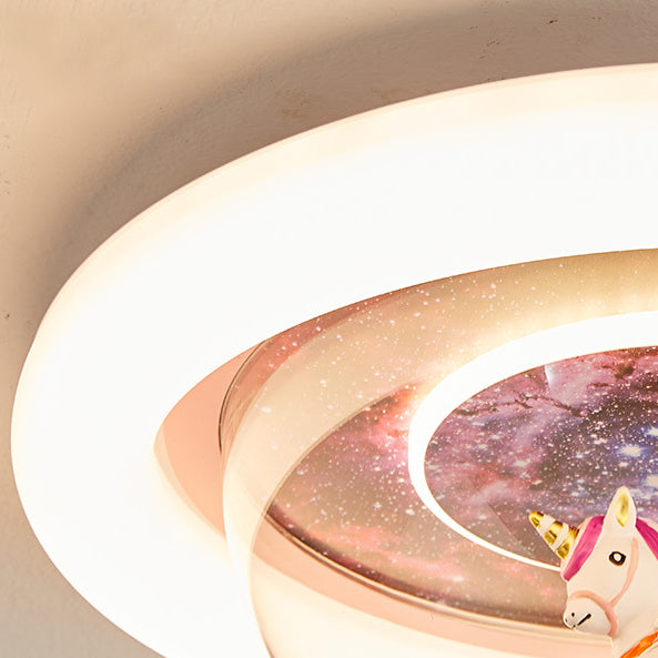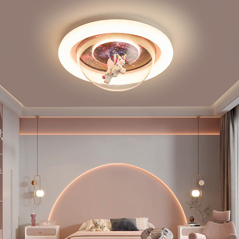 Contemporary Creative Cartoon Kids Starry Sky Unicorn Round Iron Resin Acrylic LED Flush Mount Ceiling Light Kids Light For Bedroom