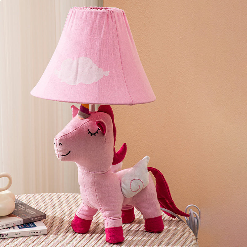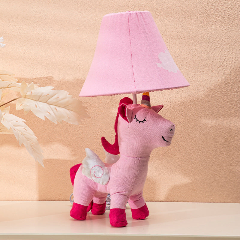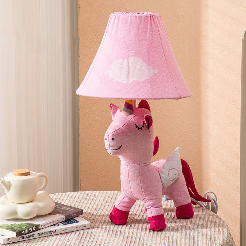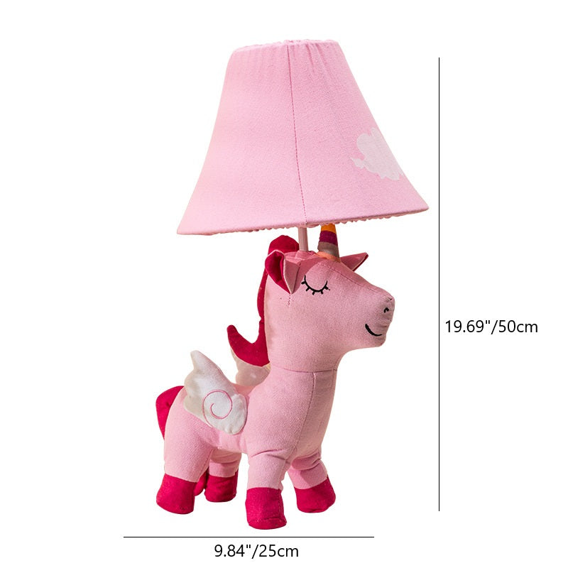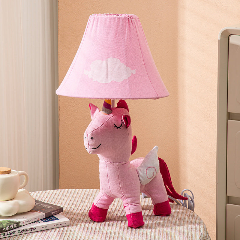 Contemporary Creative Cartoon Kids Unicorn Round Table Clouds Iron Resin Fabric 1-Light Table Lamp For Bedroom