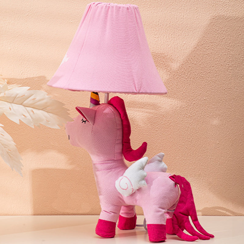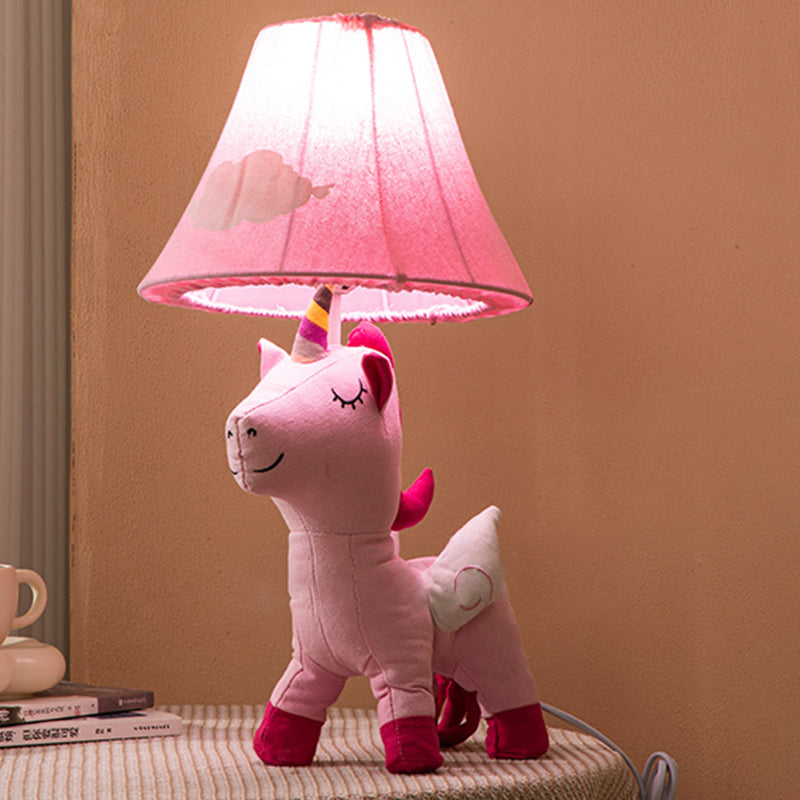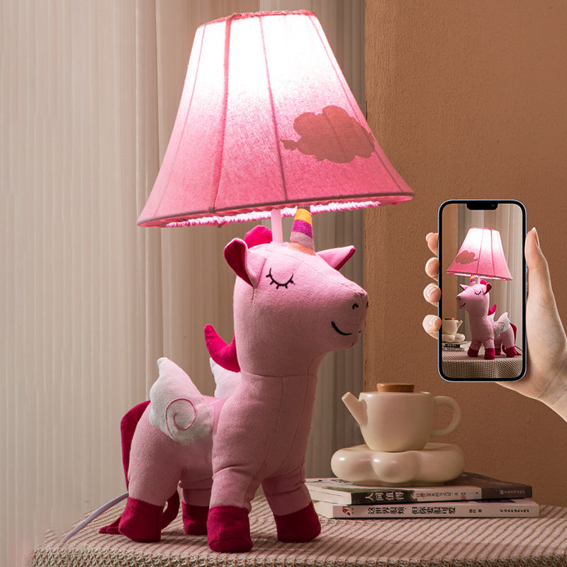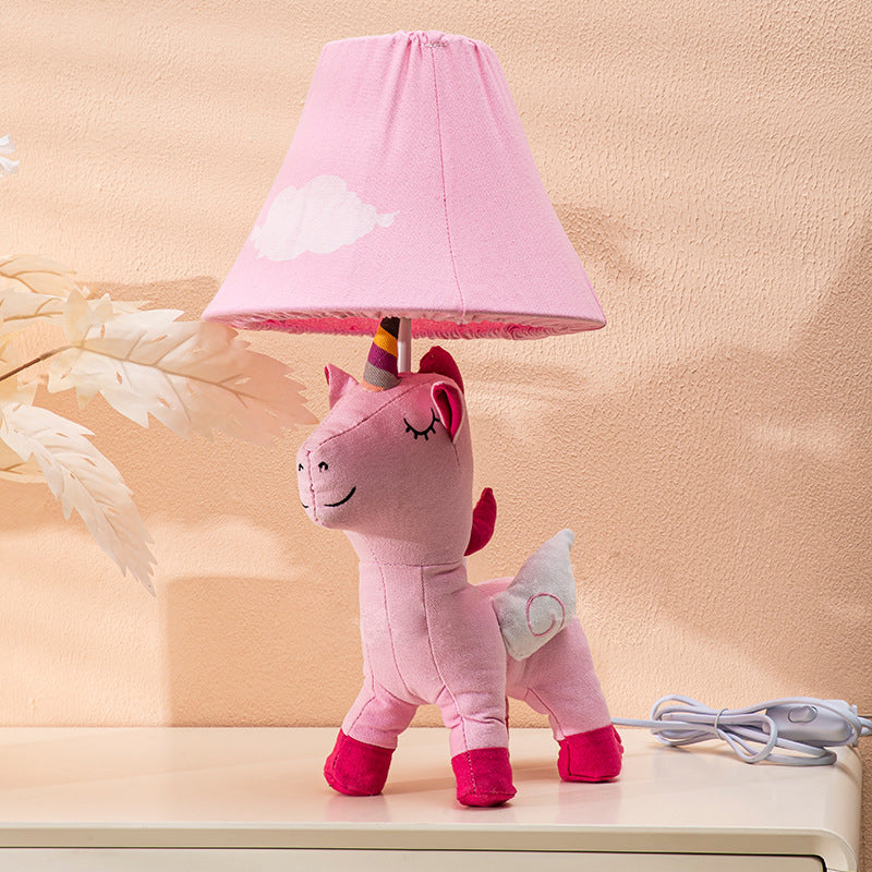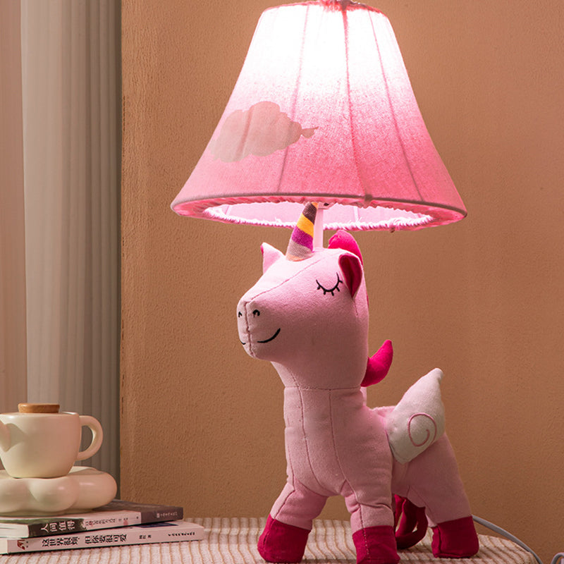 Contemporary Creative Cartoon Kids Unicorn Round Table Clouds Iron Resin Fabric 1-Light Table Lamp For Bedroom