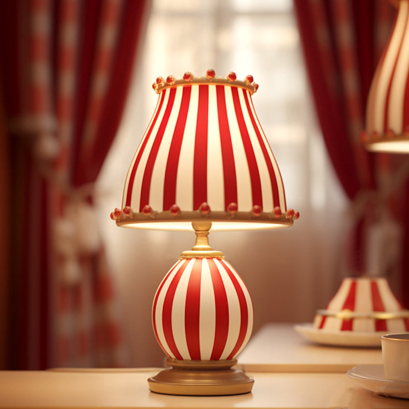 Contemporary Creative Circus Red & White Striped Glass Round Shade Resin Base 1-Light Table Lamp For Bedroom