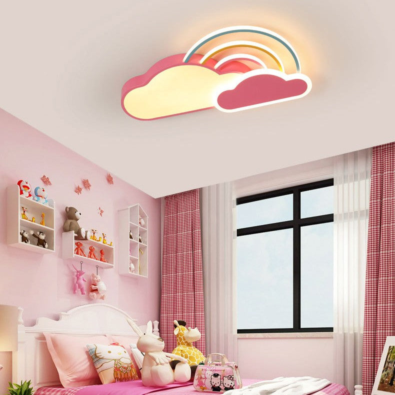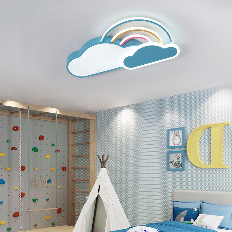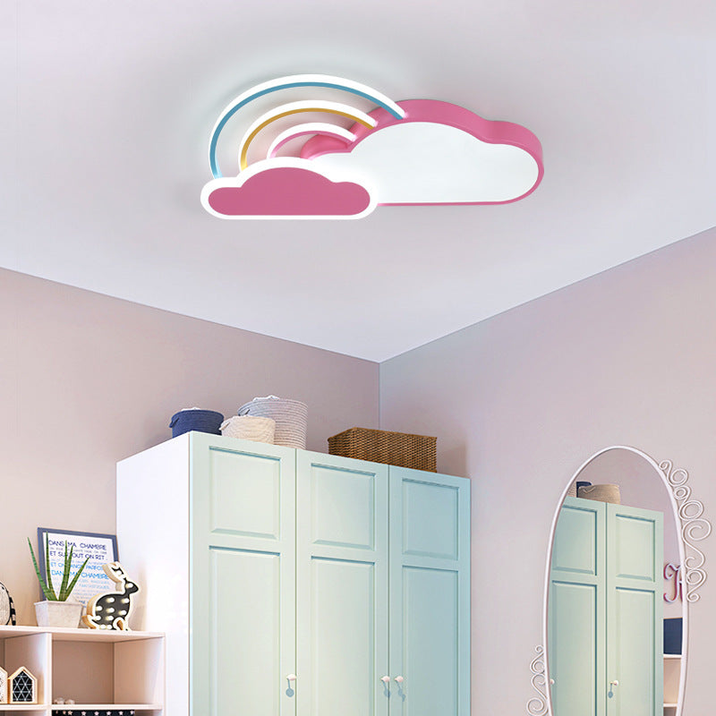 Contemporary Creative Cloud Rainbow Iron Acrylic LED Flush Mount Ceiling Light For Living Room