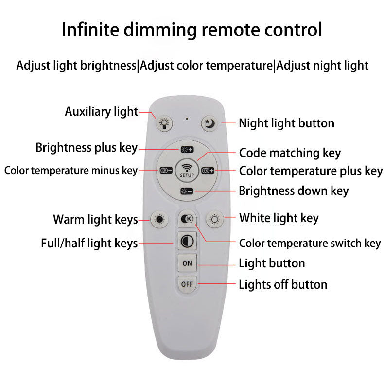 The Infinitely Dimmable option refers to the ability to adjust both the color temperature and brightness of the light, which can be freely tuned between warm white, neutral white, and cool white, and the brightness can be adjusted from 10% to 100%. These adjustments can only be made using the included remote control.