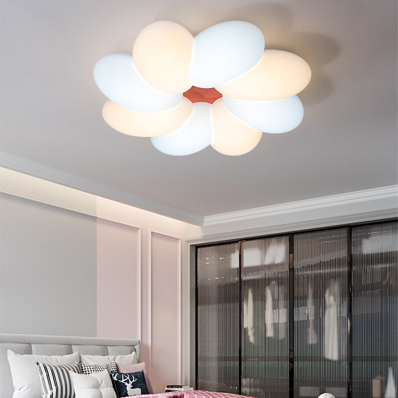 Contemporary Creative Cream Acrylic Petal Shape LED Flush Mount Ceiling Light For Bedroom