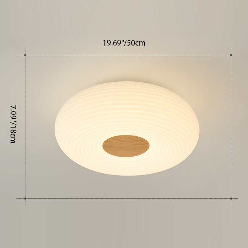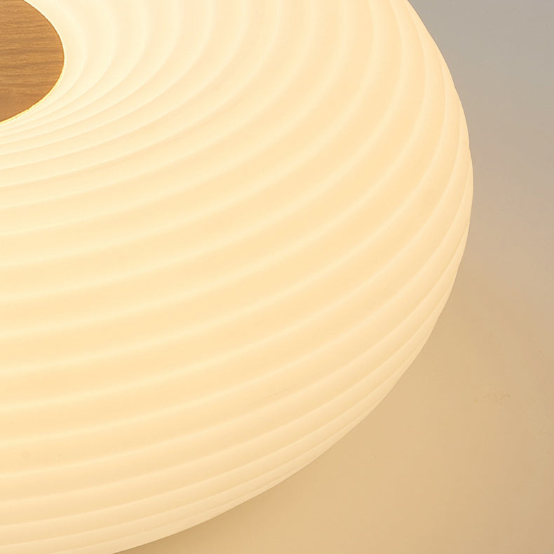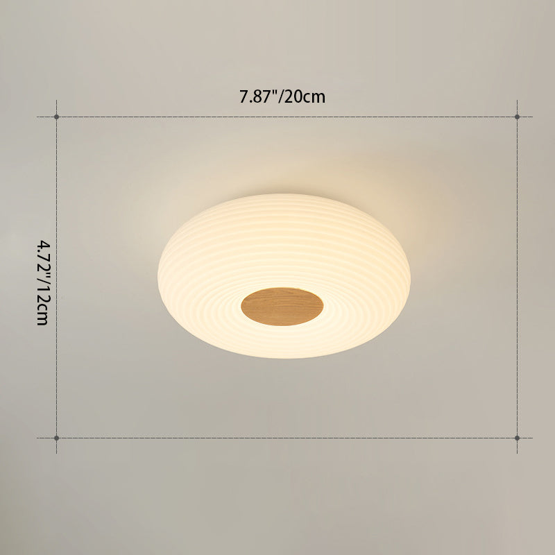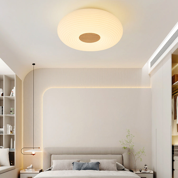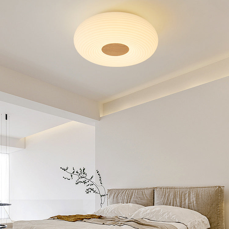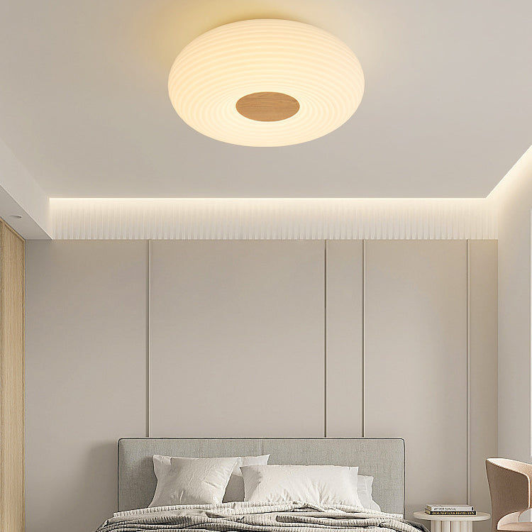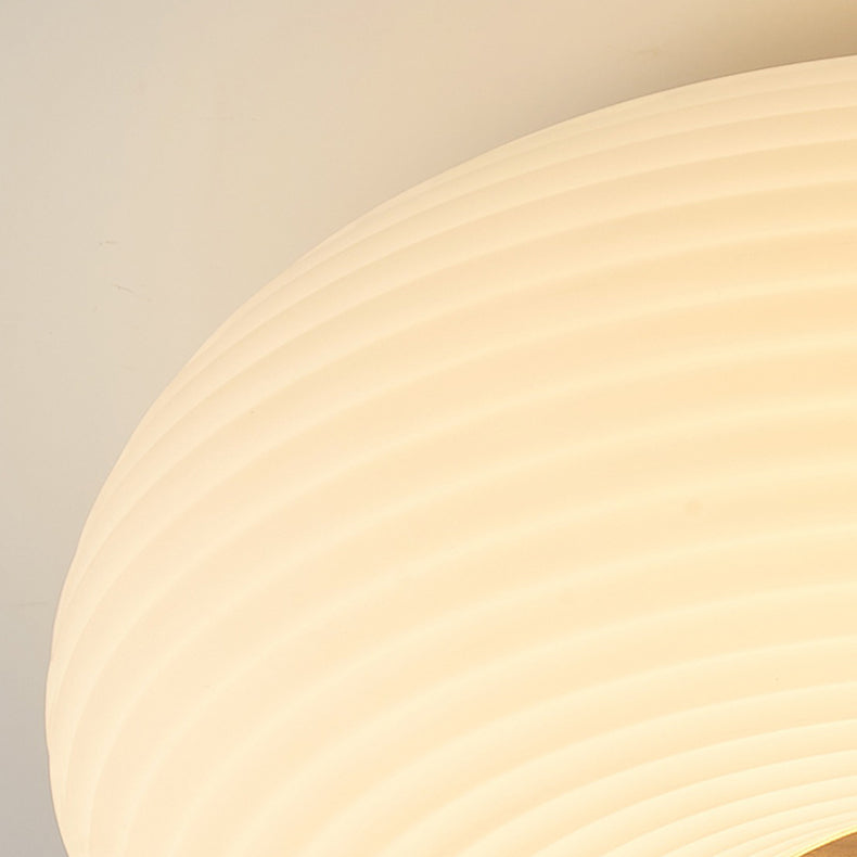 Contemporary Creative Cream PE Horizontal Stripes Round Shade LED Flush Mount Ceiling Light For Bedroom