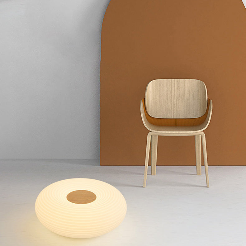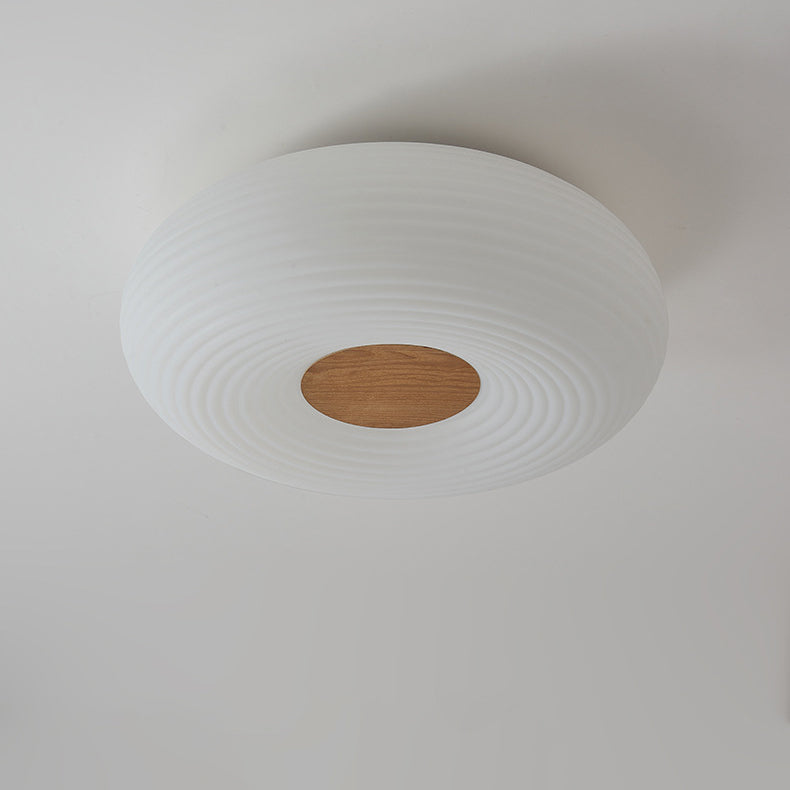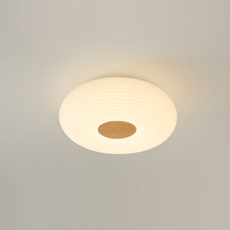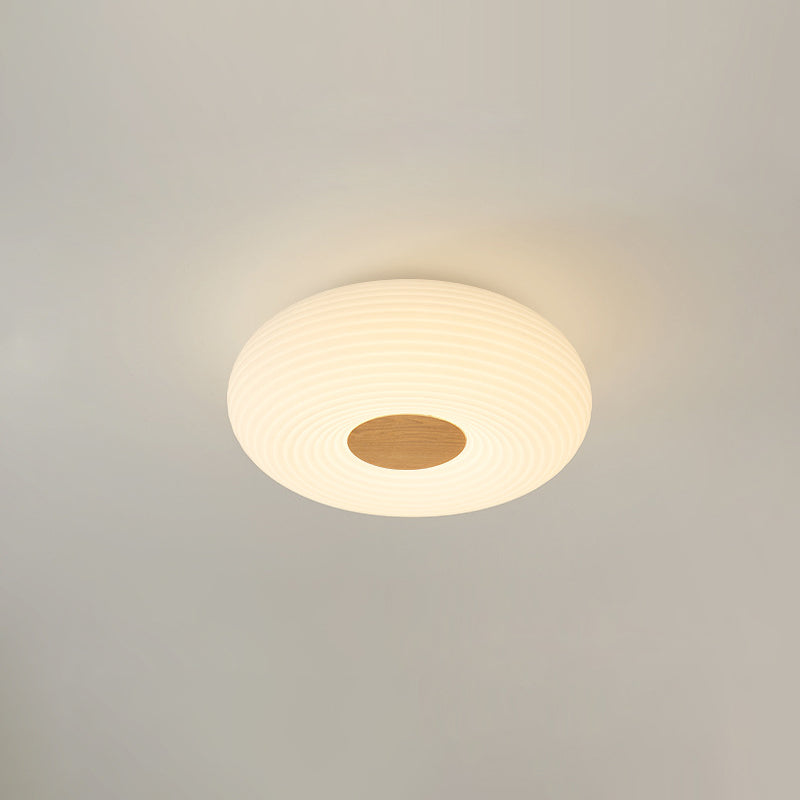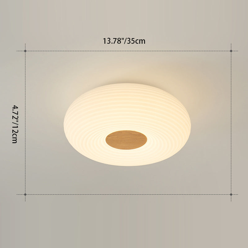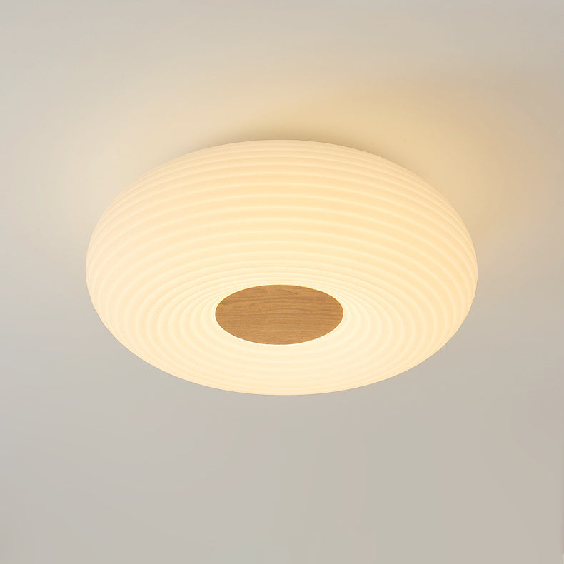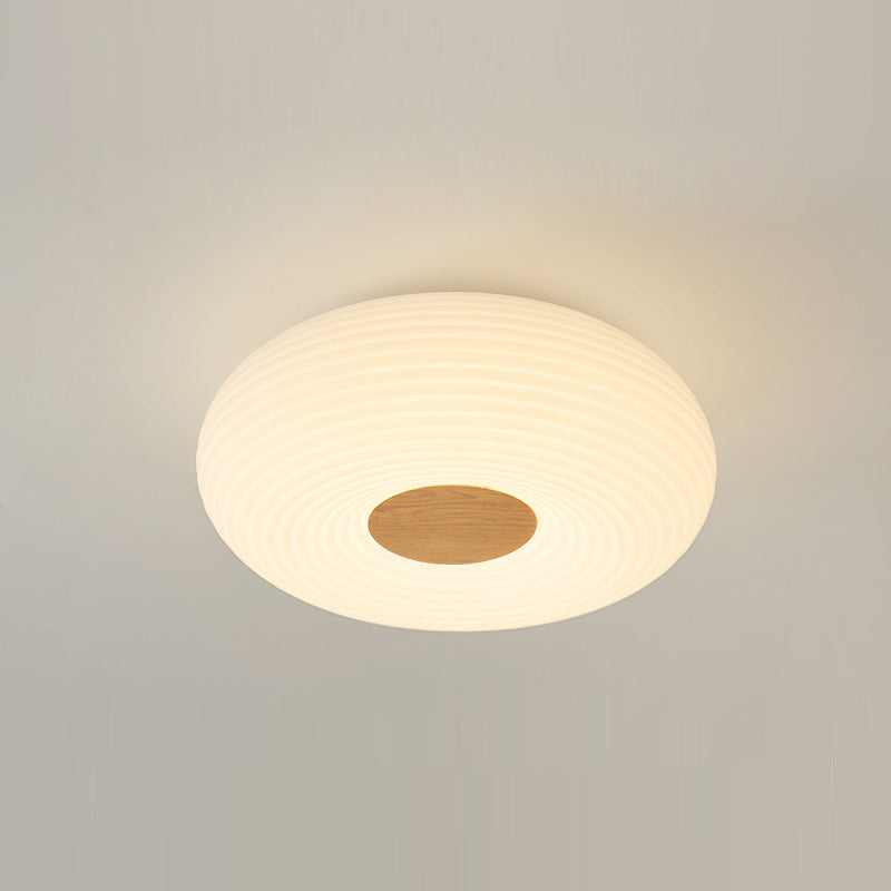 Contemporary Creative Cream PE Horizontal Stripes Round Shade LED Flush Mount Ceiling Light For Bedroom