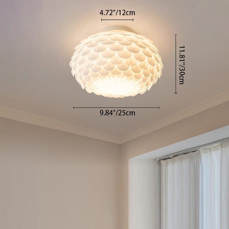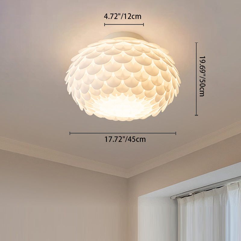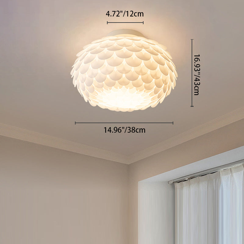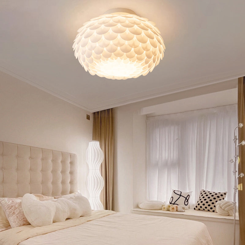 Contemporary Creative Cream Round Flower Iron PVC 1-Light Flush Mount Ceiling Light For Bedroom