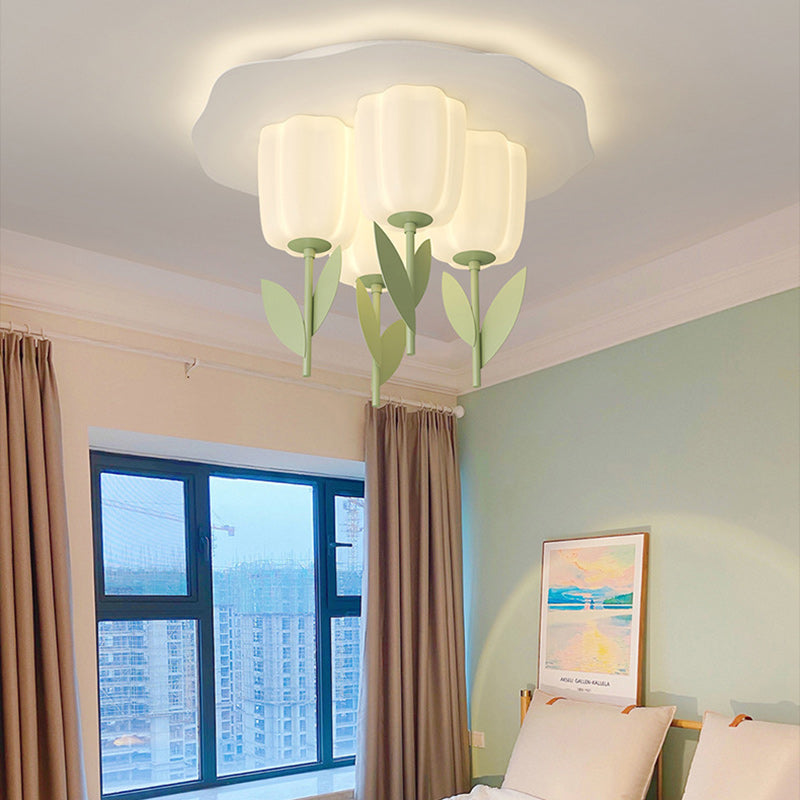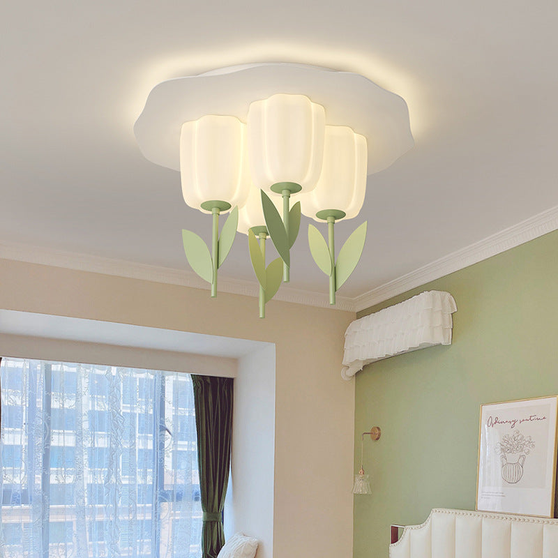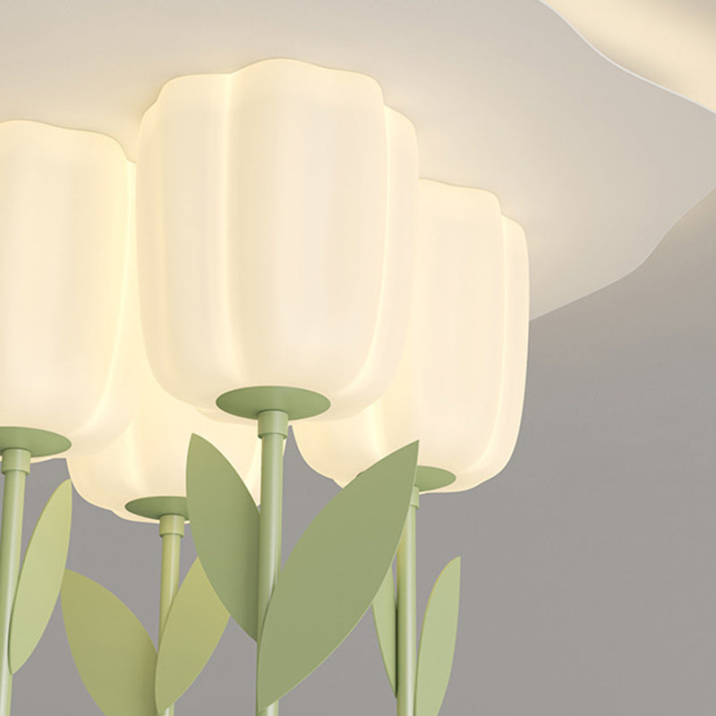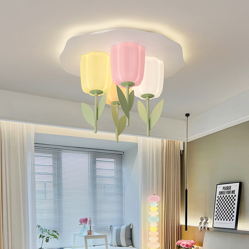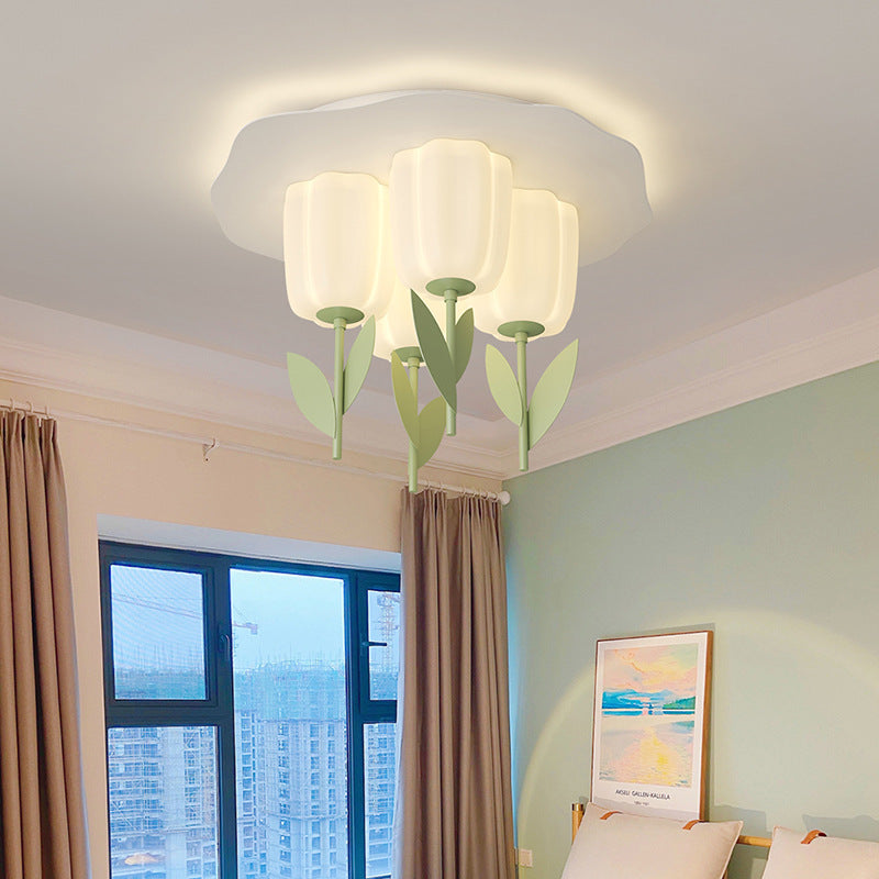 Contemporary Creative Cream Tulips Roto-molding Lampshade Iron LED Semi-Flush Mount Ceiling Light For Bedroom