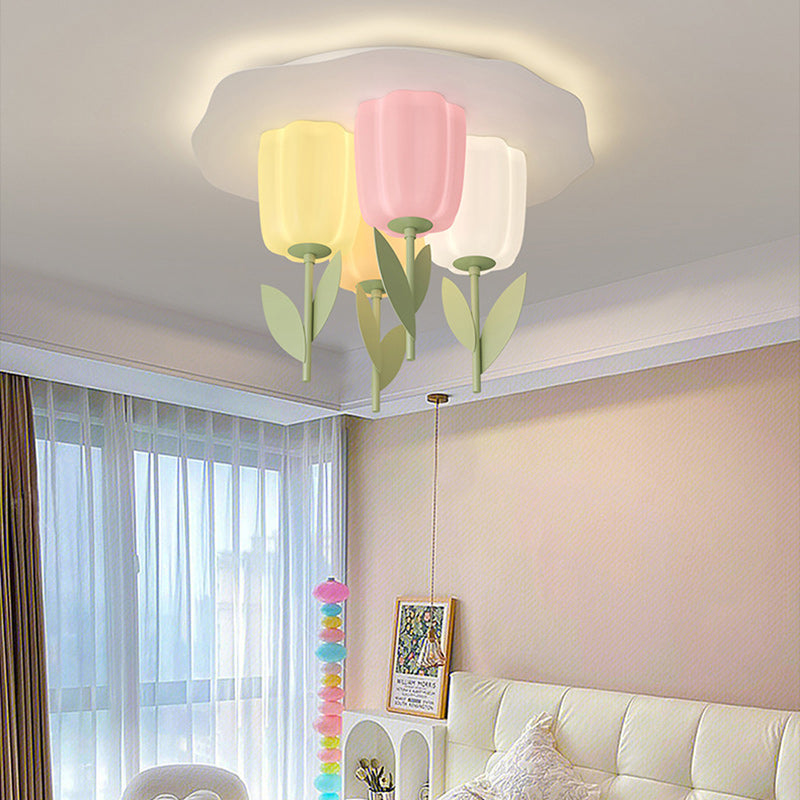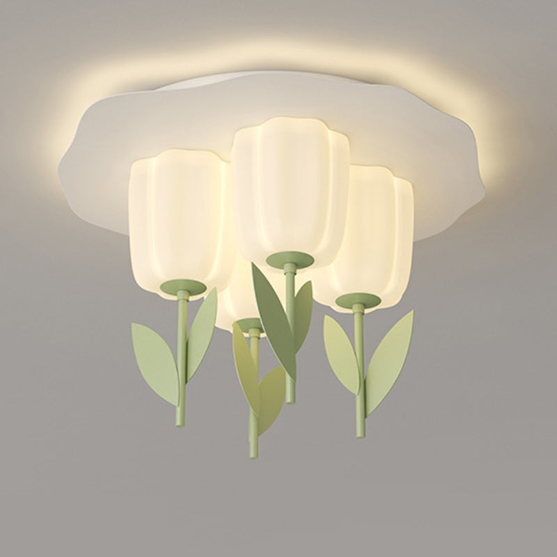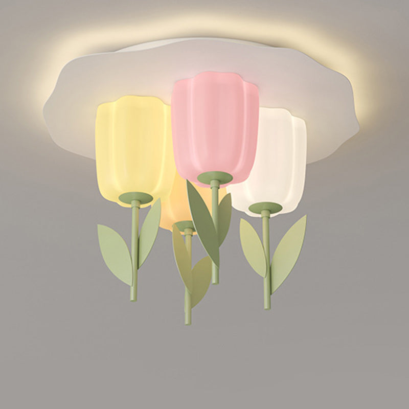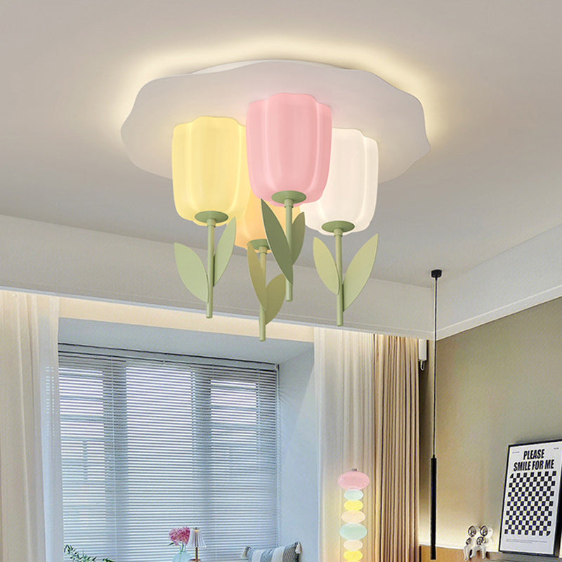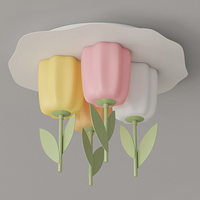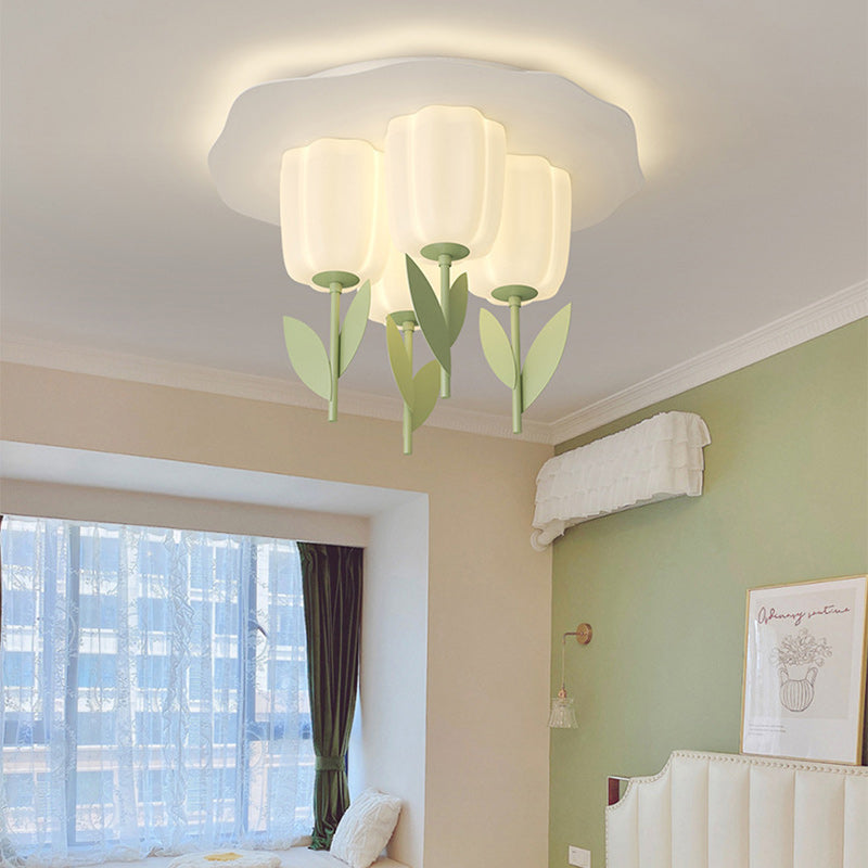 Contemporary Creative Cream Tulips Roto-molding Lampshade Iron LED Semi-Flush Mount Ceiling Light For Bedroom