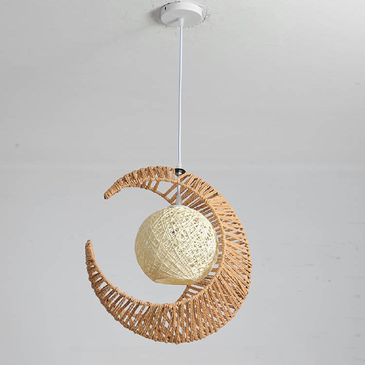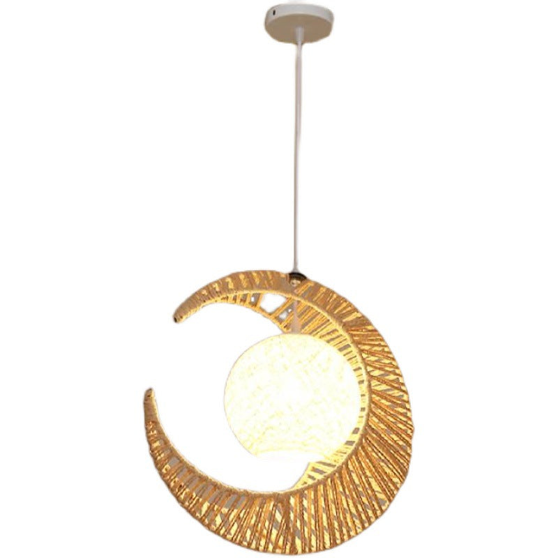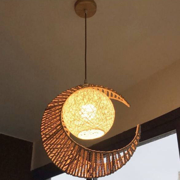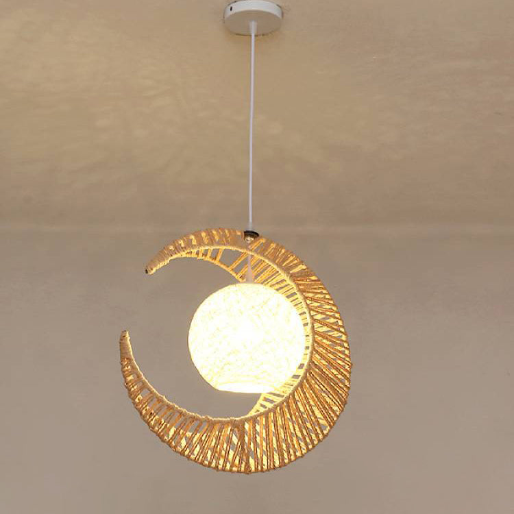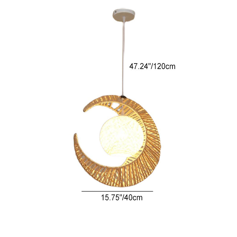 Contemporary Creative Crescent Moon Hemp Rope Weaving Shade 1-Light Pendant Light For Living Room