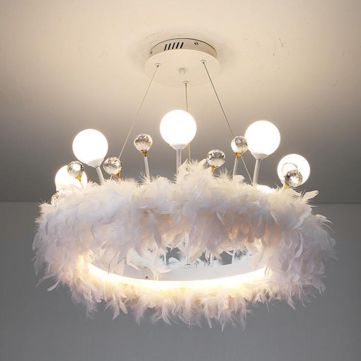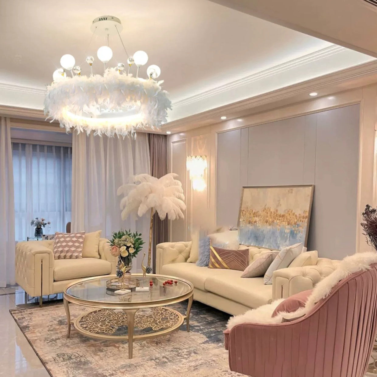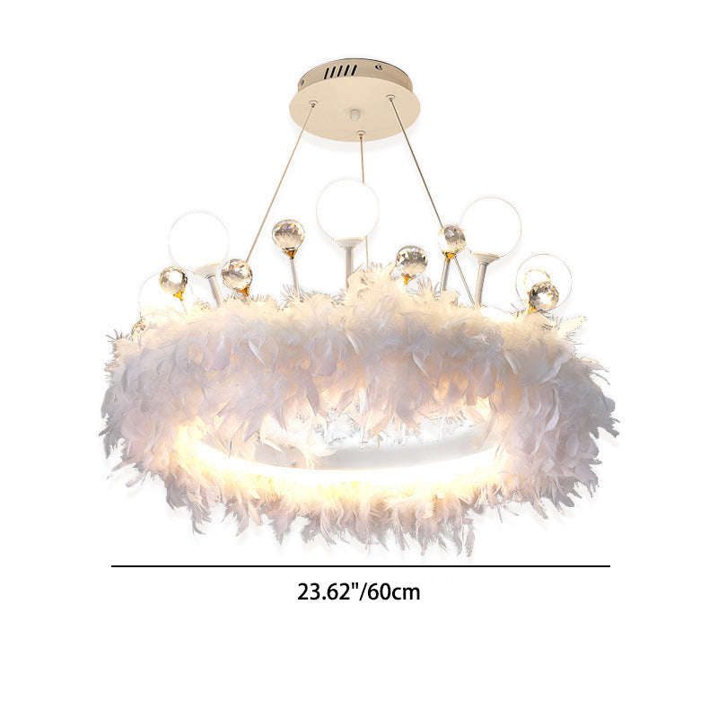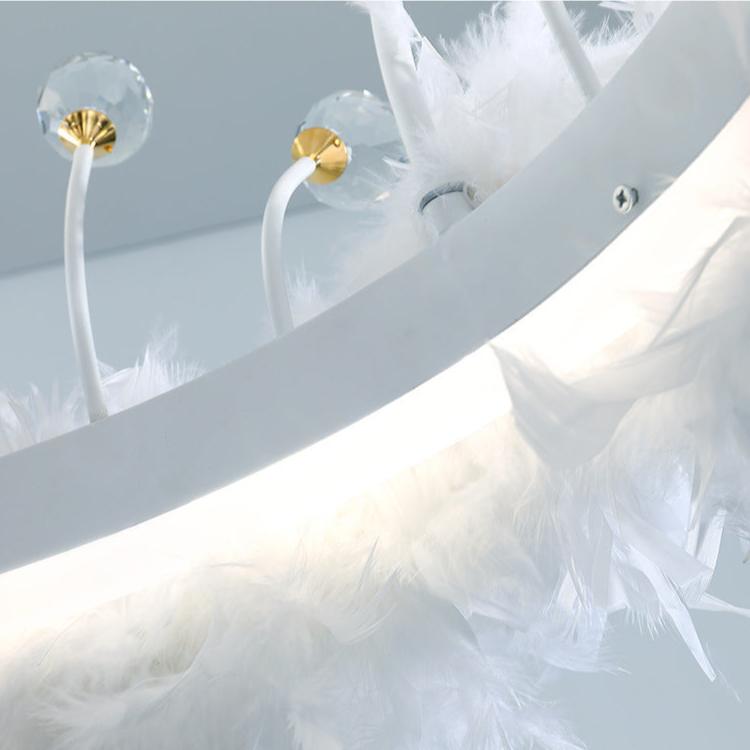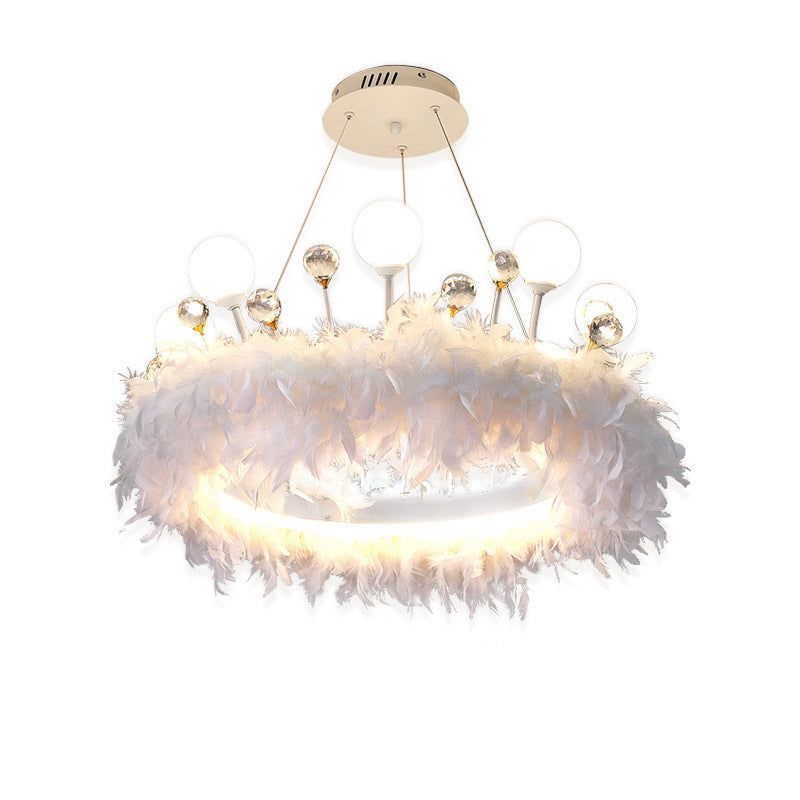 Contemporary Creative Crown Acrylic Ring Feather Decor LED Chandelier For Living Room